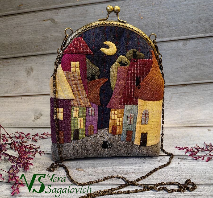 Вот и сшила такую сумочку - "Город кошек". Процесса не будет (сейчас все силы на запуск ленты доната в ВК в моей группе, где будут совместные пошивы), просто похвастаться.