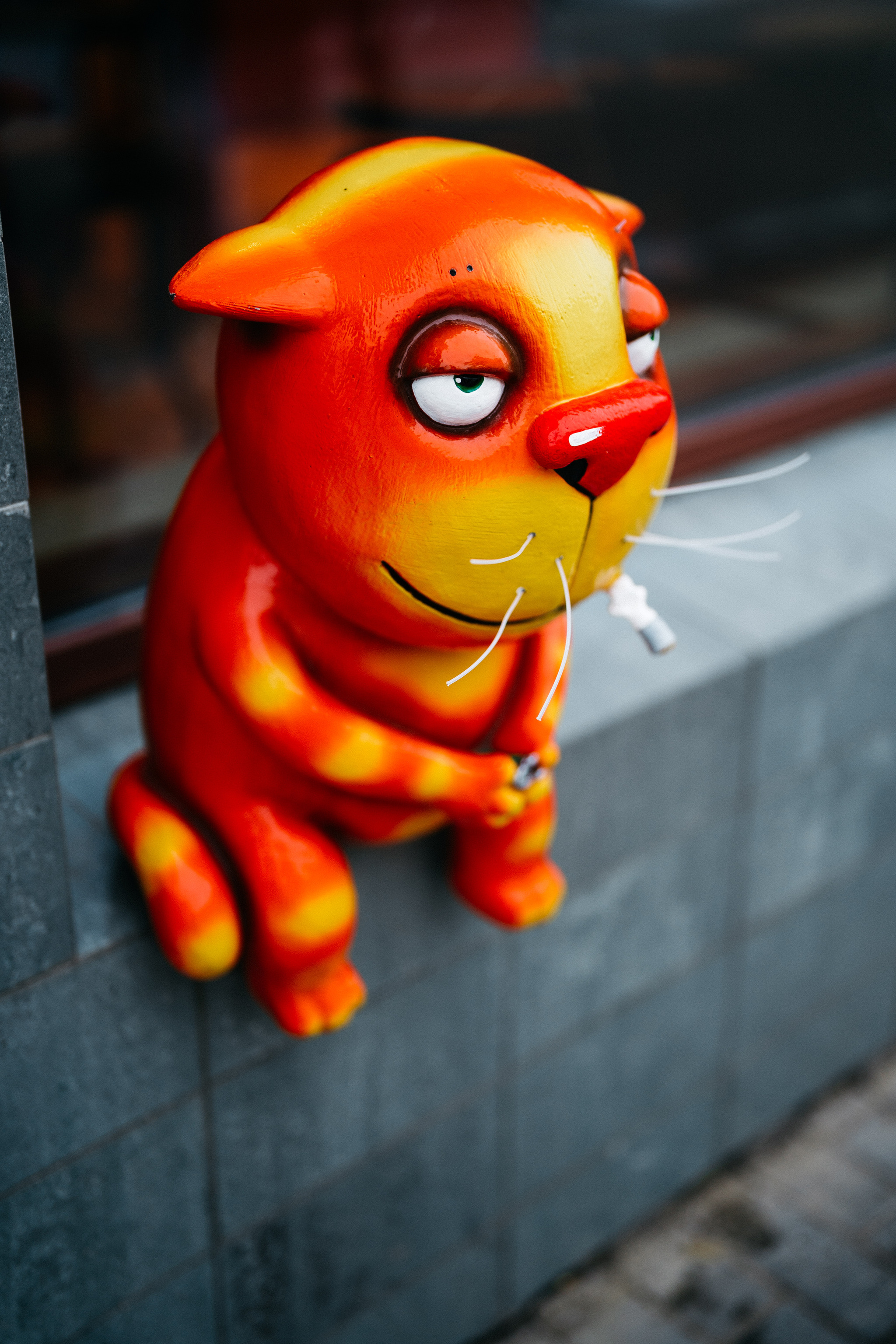 Фирменные коты встречают гостей уже на входе и даже над входом. А через огромное окно видно большую часть происходящего в заведении.