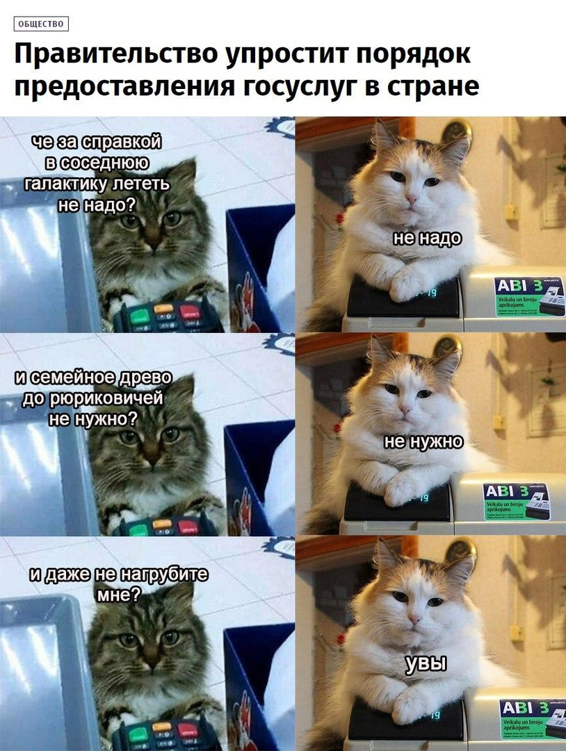 2443 pfsenses 5 лет назад Котики все делают лучше. Наверное и эта новость связана с ними... Вот пруф. Если кому надо. Госуслуги Кот Юмор Картинка с текстом Бюрократия Упрощение 5 1 Ещё 0