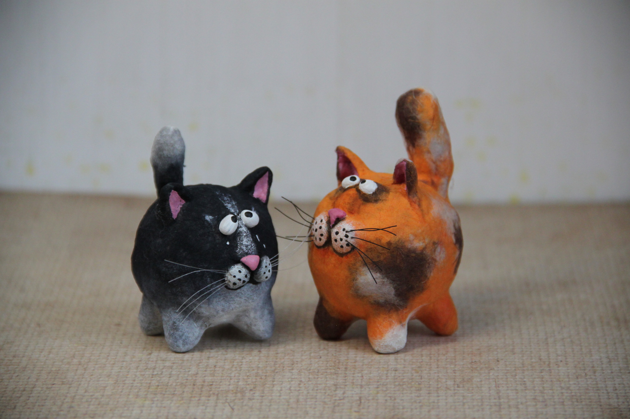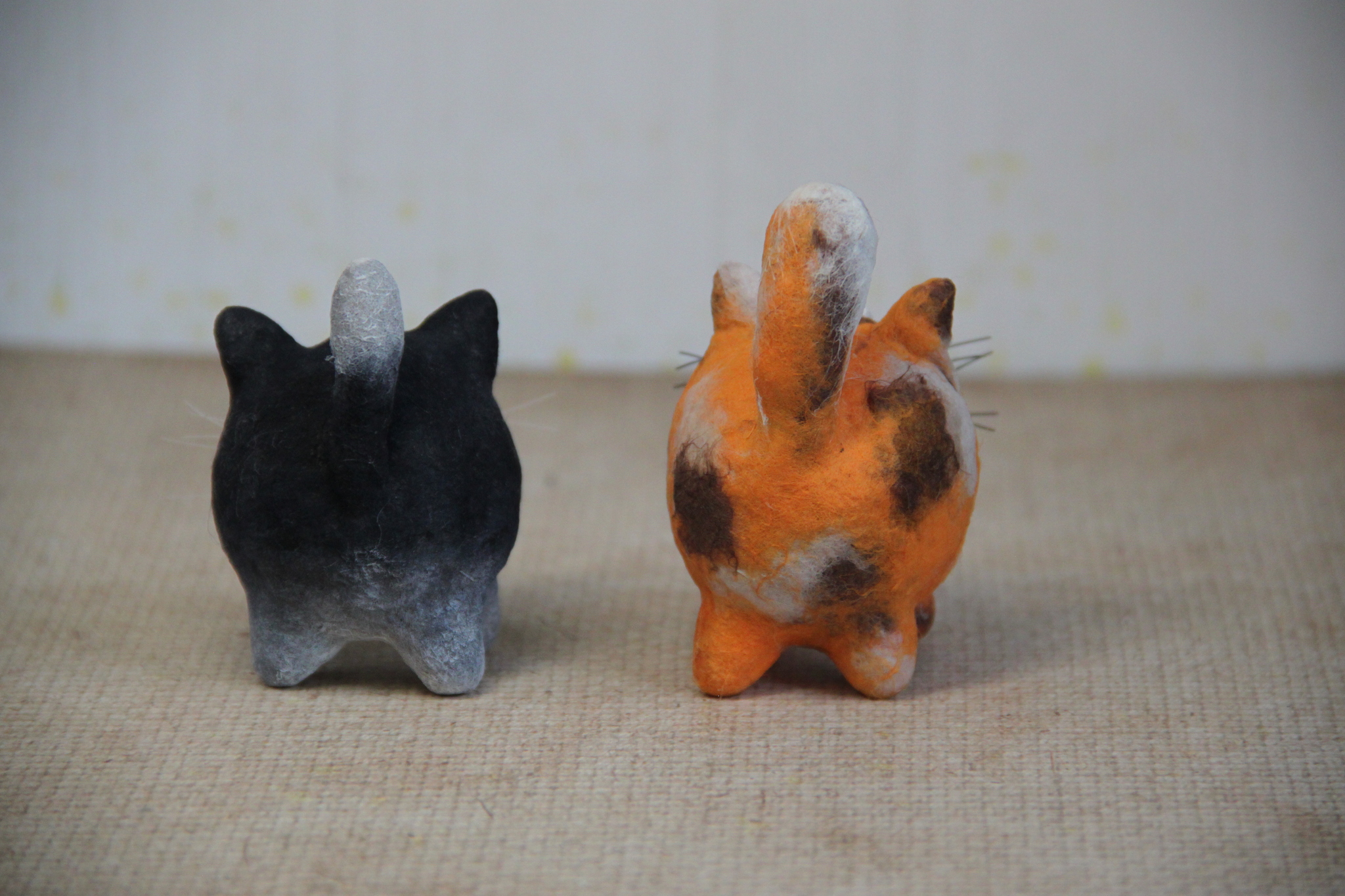 Черныш тонирован гибридом акрила и акварели, рыжик - опять весь из цветной ваты, как этот воришка. А толстожопенькая котейка - она акрилом.