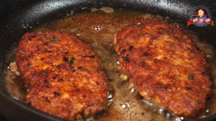 Это мордовский национальный рецепт котлеты. Я приготовил эти котлеты по своему, с учетом того, что у меня нет медвежатины и вкуса дичи добился добавлением в фарш особого ингредиента. В результате они сочные, мягкие, с ароматом дикого красного мяса.