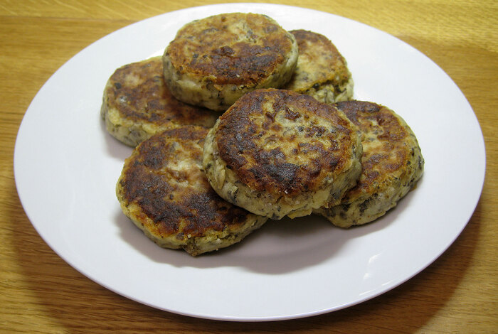 Жарим котлеты на растительном масле до корочки, потом выкладываем на противень и доводим в духовке в течение 15 минут. Поедаем с чем хотим (хорошо подходит соус тартар).