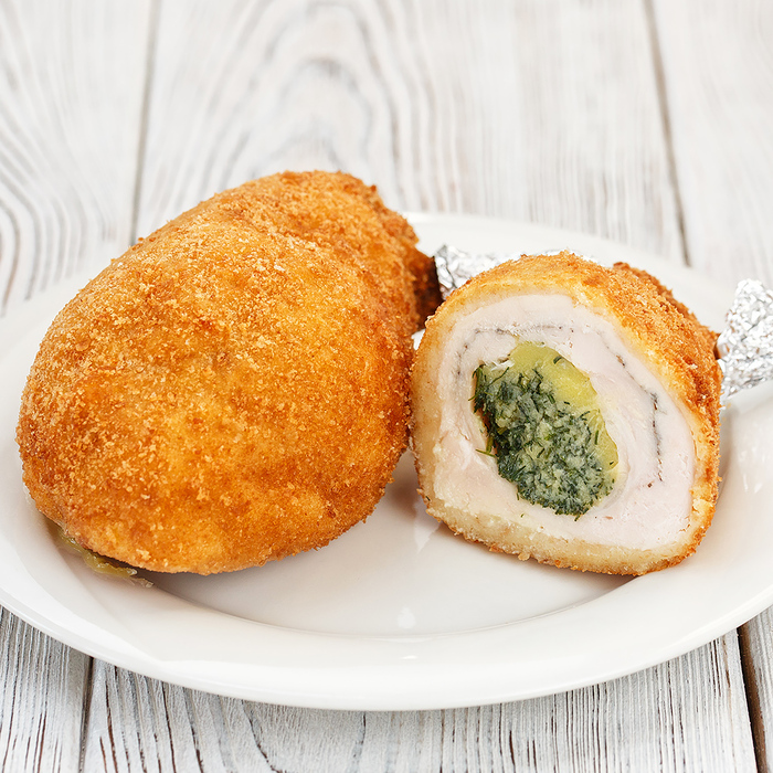 3 - Отрезать от колбаски из сливочного масла кусок длиной 8–10 см и завернуть его в филе. Отправить котлеты на 15 минут в холодильник.