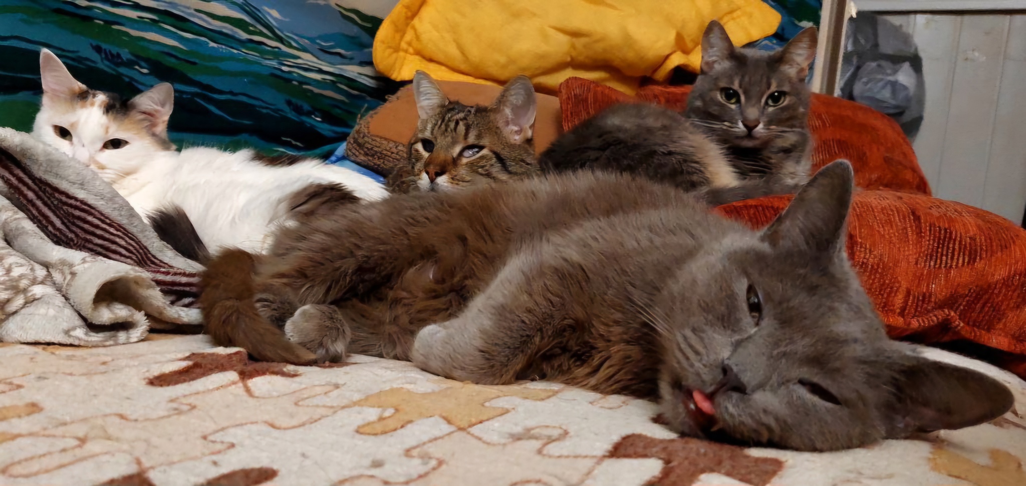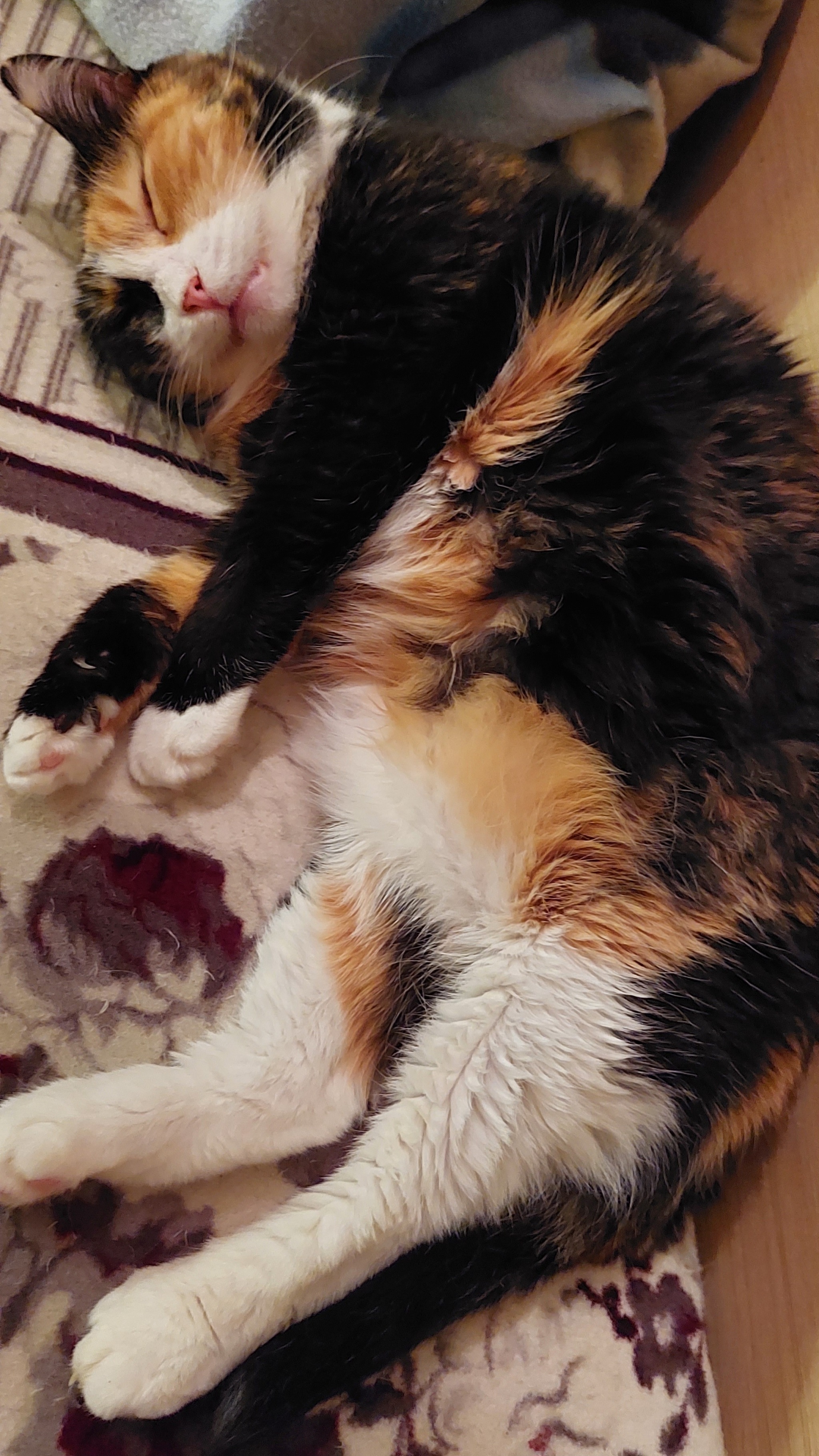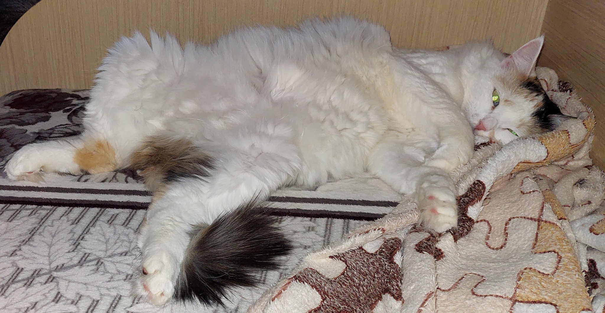 Но были и потери. В мае 2024 от нас ушла Кася. Та самая котенька с изломанным обрубком хвостика, которая 3 месяца шла к нам домой и пришла на короткие 7 лет. Ласковая, нежная, тихая, спокойная. Кальцивироз добил ее проблемы с почками, не выдержал организм.