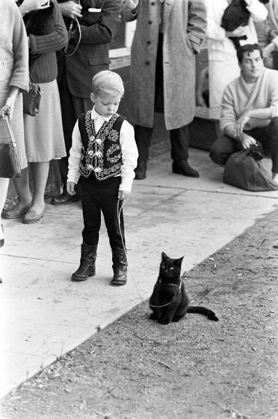 818 Darsinka 9 лет назад Котокастинг Котик со своим хозяином в очереди на кастинг черных котов, 1961 год. Фильм назывался "Истории ужасов/Tales of Terror". Продюсеры ищут одного котейку-звезду и ещё пять в качестве дублеров для него. Кот Кастинг Голливуд Фотография Черно-белое