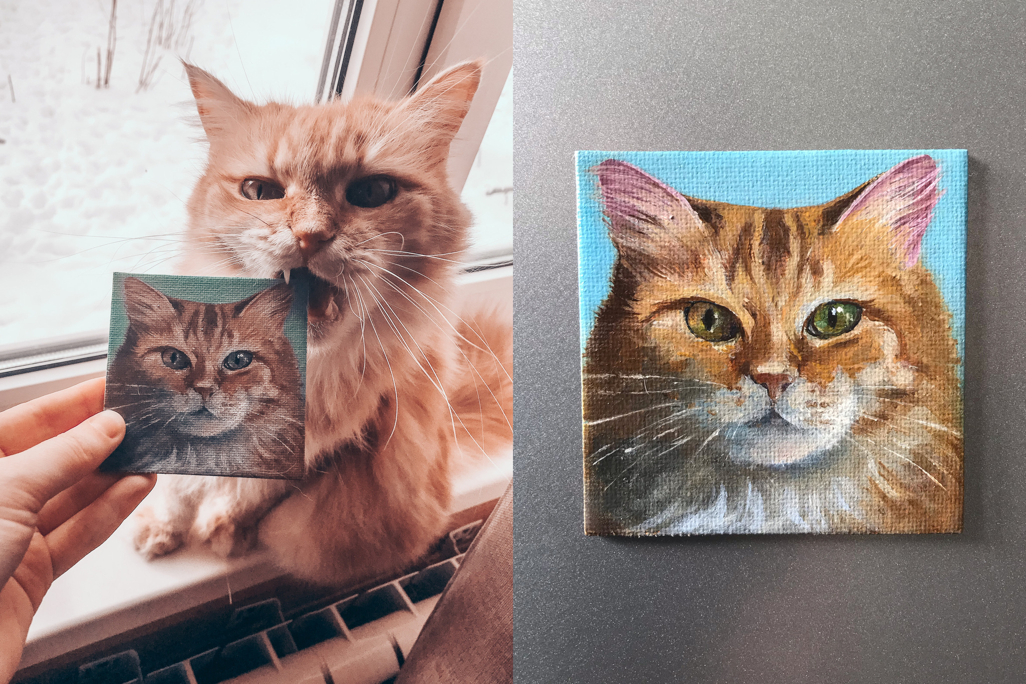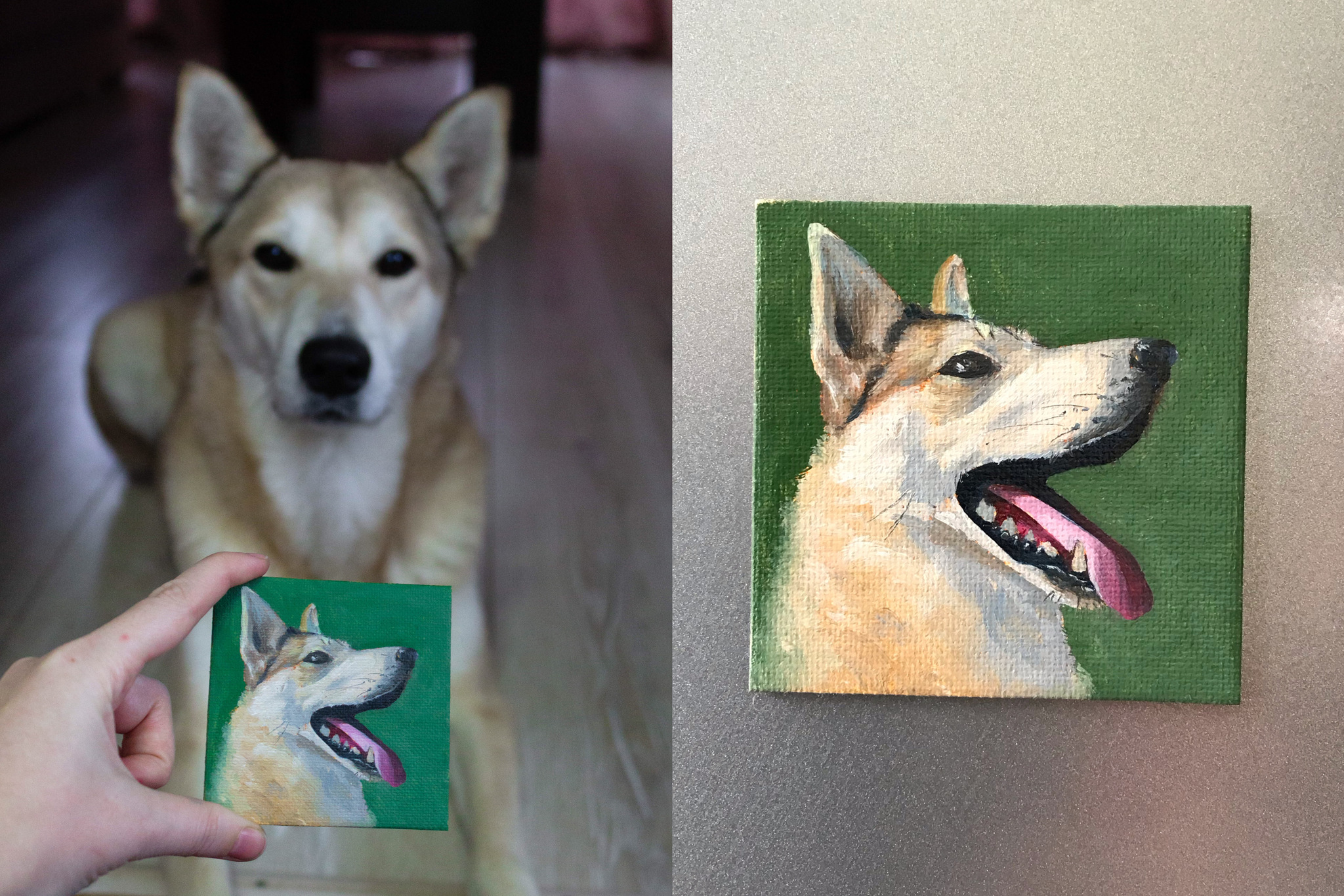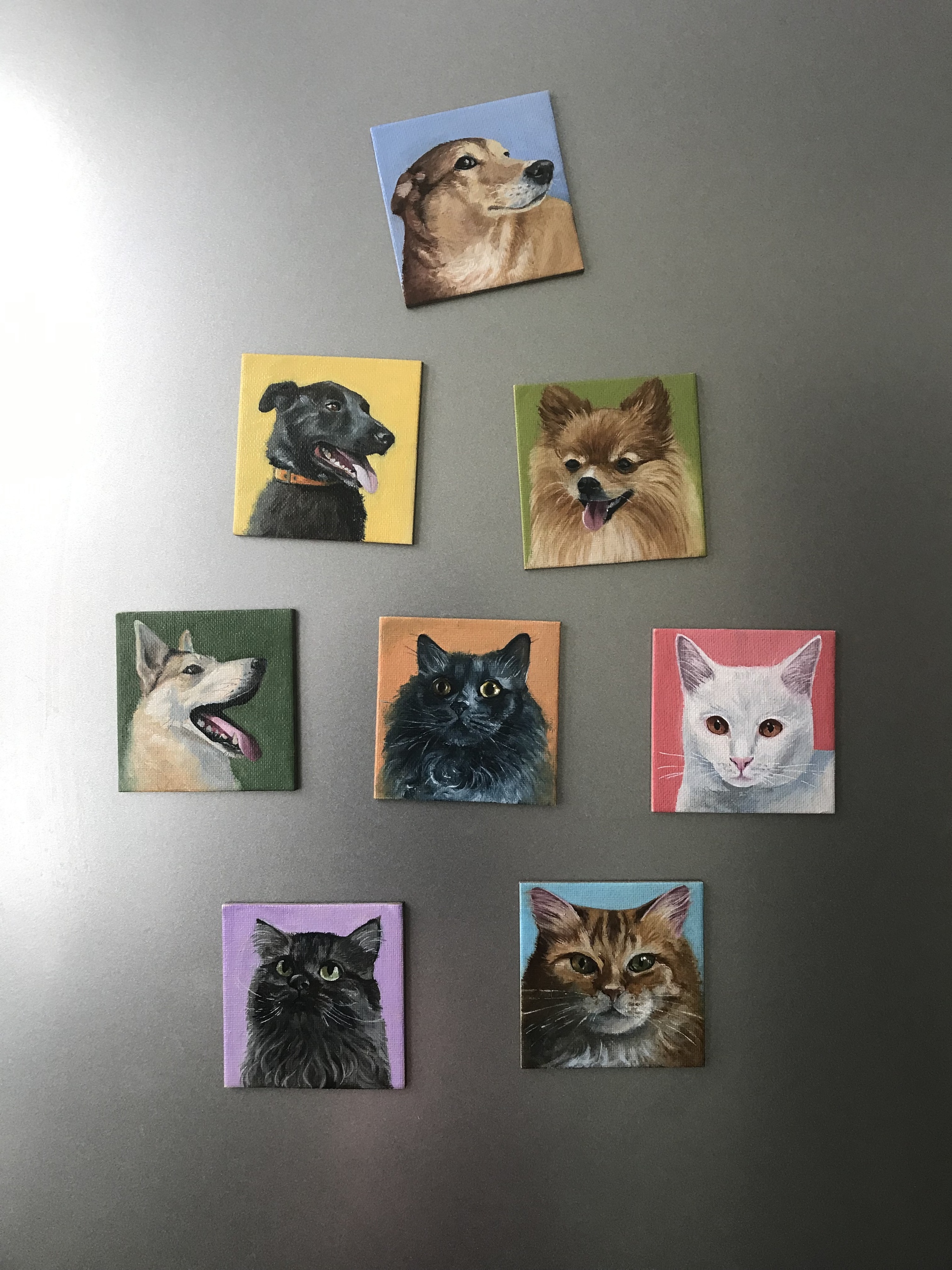 На Озоне тут заприметила магнитики с холстом на другой стороне, заказала значит, привезли. Так как дома большое хозяйство, состоящее из 4ех котов и 4ех псов, то было решено рисовать на магнитиках их великолепия, чтобы любоваться на них в два раза сильнее. Представляю вашему вниманию результат моего творчества, да не просто так, а совместно с моделями :) Все магнитики 7,5х7,5 см, масляные краски, каждый портрет занял примерно 2 часа