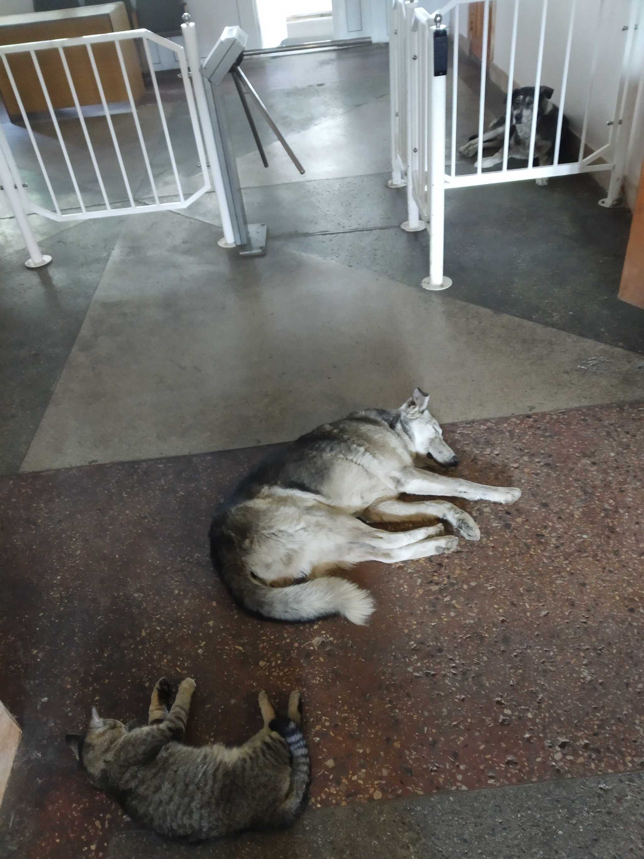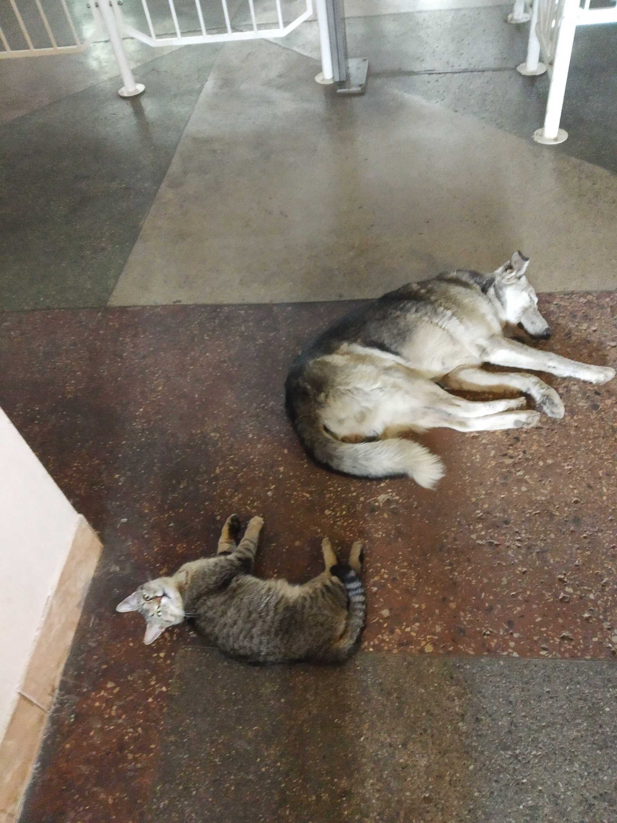 36 oknee2 Котопёс (в дополнение к рабочим котикам) 6 лет назад Вот у нас есть такие товарищи на заводе, только роль охраны выполняют ))) Че надо?!.. Сори за качество, съёмка на мобилку. [моё] Кот Коты и собаки вместе Работа Длиннопост Собака