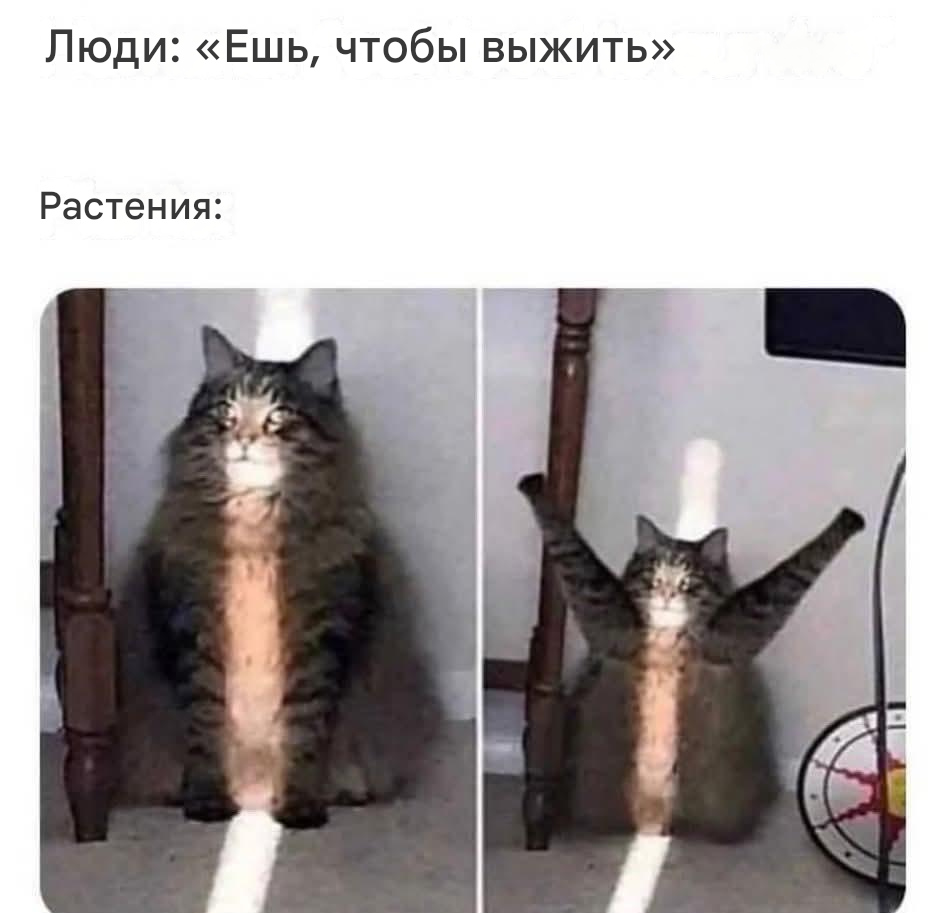 743 Skyscrew 2 дня назад Юмор для всех и каждого Котосинтез Картинка с текстом Мемы Растения Фотосинтез Солнце Еда Кот 30 24 1 Ещё 0
