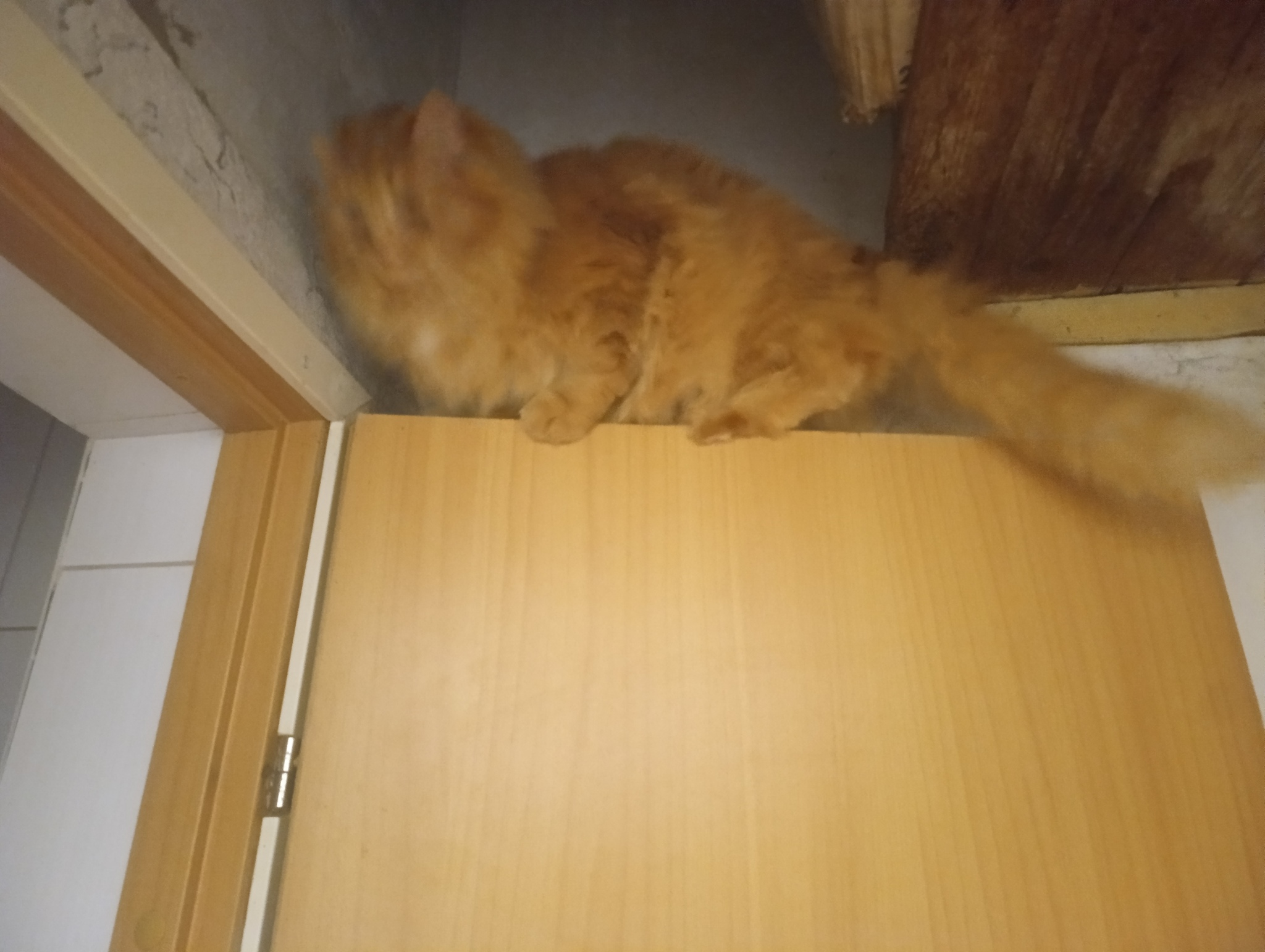 Стоило отвлечься на минуту - слышу грохот - стремянка чуть не упала, а кот на двери туалета балансирует. Стремянка сразу за спиной фотографа. Кот на неё залез и сделал горизонтальный прыжок пролетев больше метра.