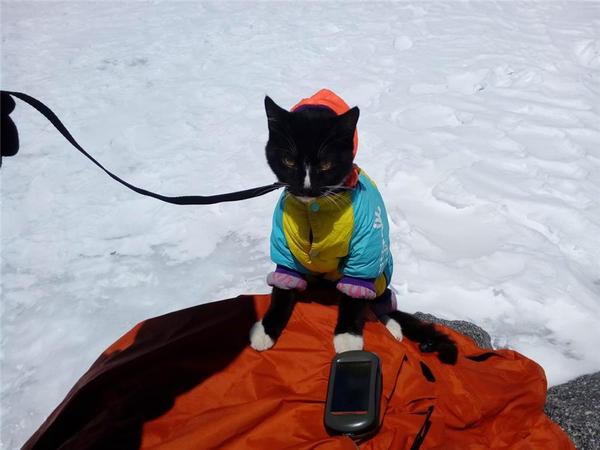 «У него там, кстати, очень тепло было. На привалах, когда замерзали руки, я их отогревал у кота в рюкзаке. К комбинезону он так и не привык, ругается, когда пытаешься одеть его. А так спокойно спит в рюкзаке всю дорогу. Захочет выйти в туалет или просто походить – начинает мякать. Я останавливаюсь, выпускаю его», — объясняет Андрей.