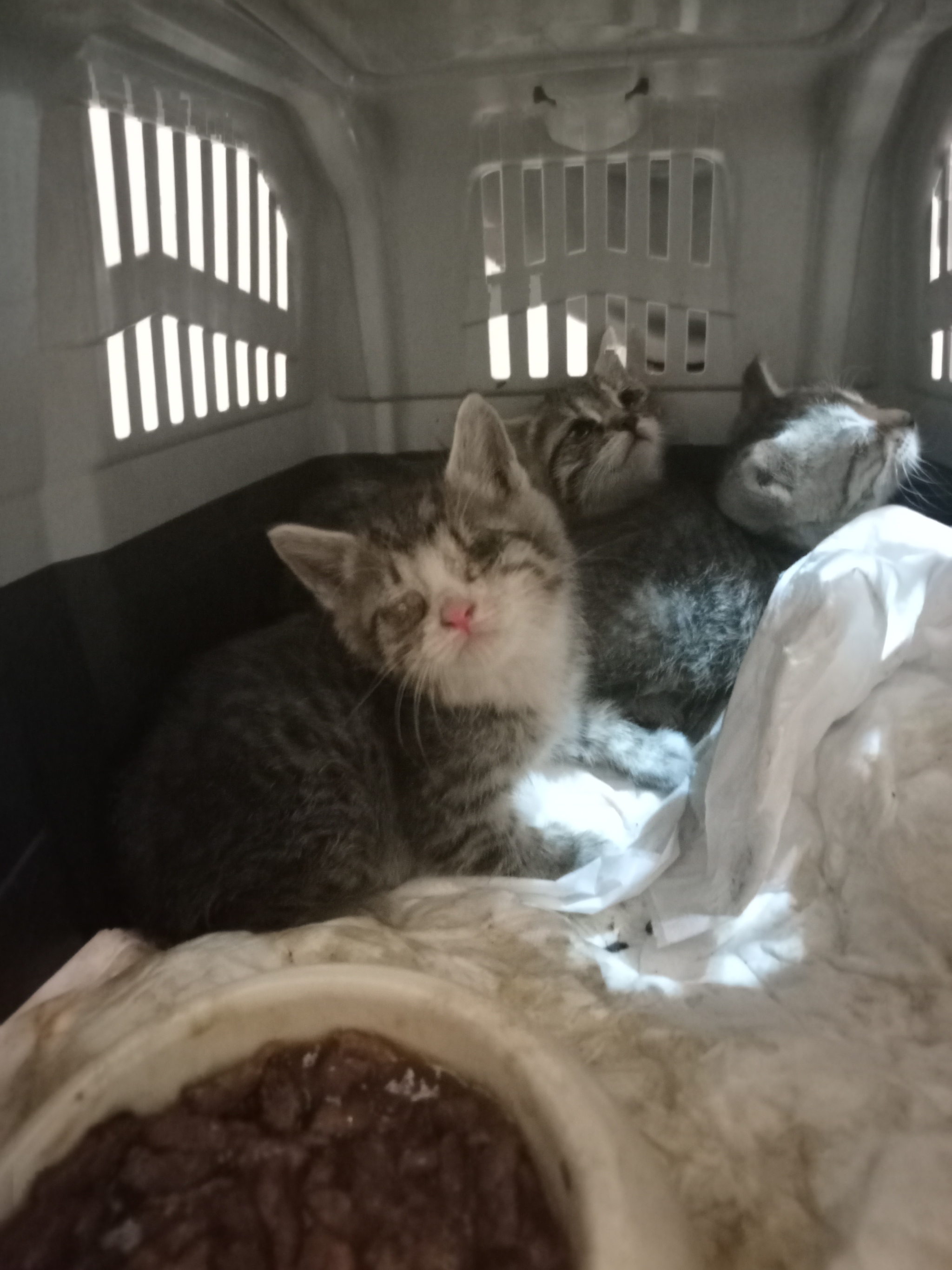 Глазки у котят уже были поражены инфекцией. Открыть их от такого количества гноя они не могли. Все были искусали блохами((