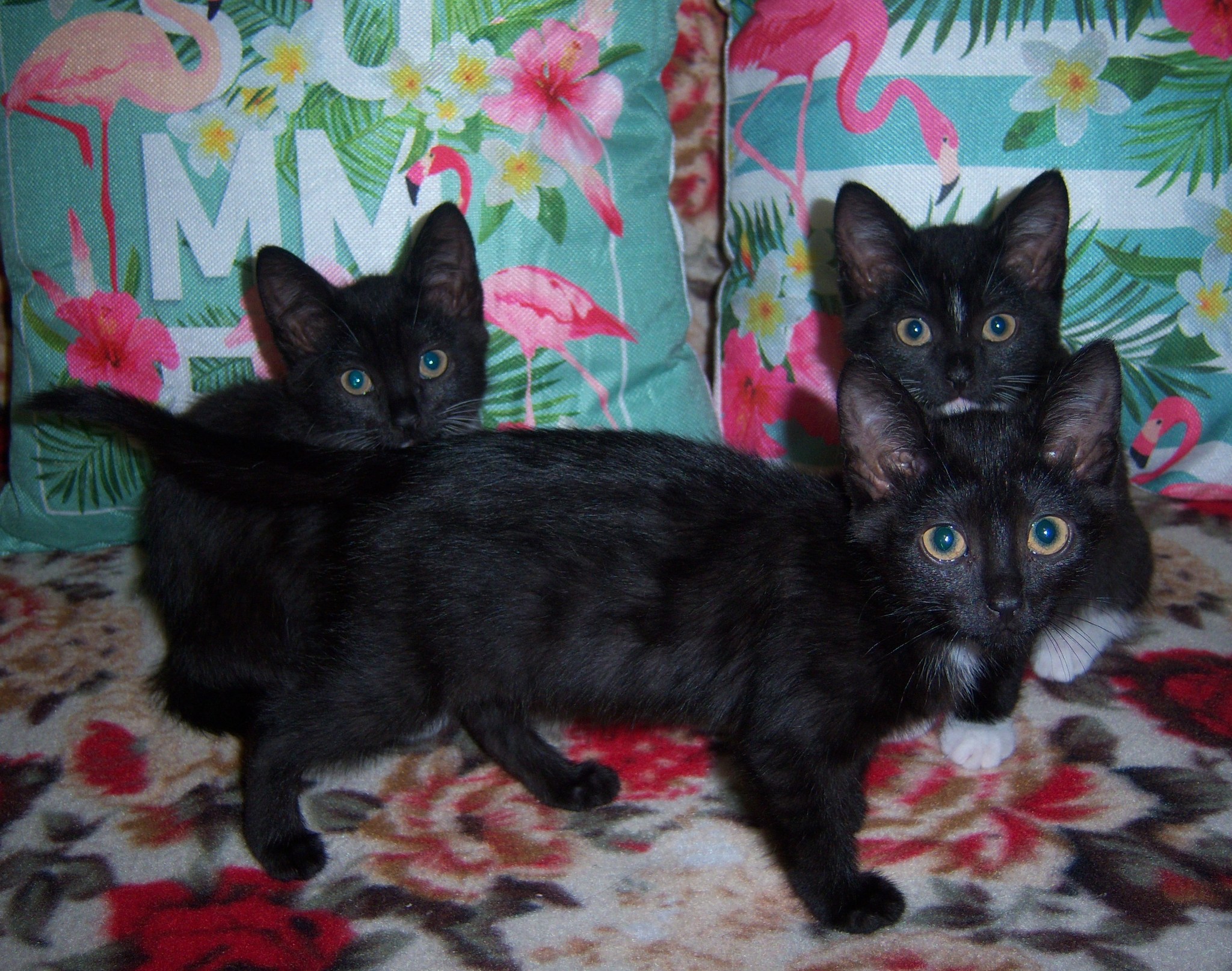 По факту три лохматых девки, общительные, со встроенным мурчальником. Едят всё, что не приколочено, ходят в лоток, проглистогонены. Очень любят фотографироваться.