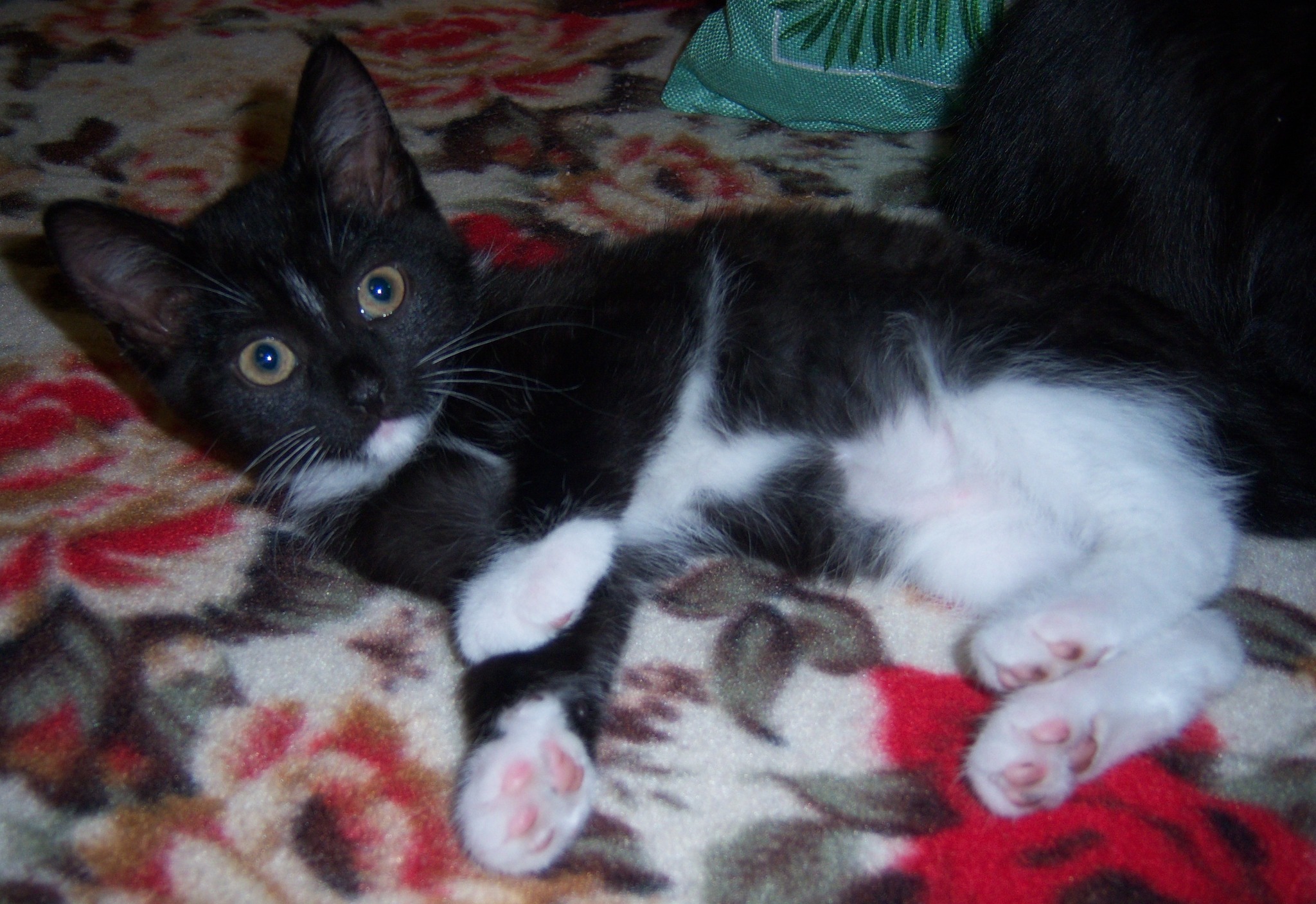 В этом году котята не мои, потому что все мои коты, кошки кастрированы. В этом году котят мне нарожала деревенская кошка, которая пришла к нам зимовать, да так и осталась.
