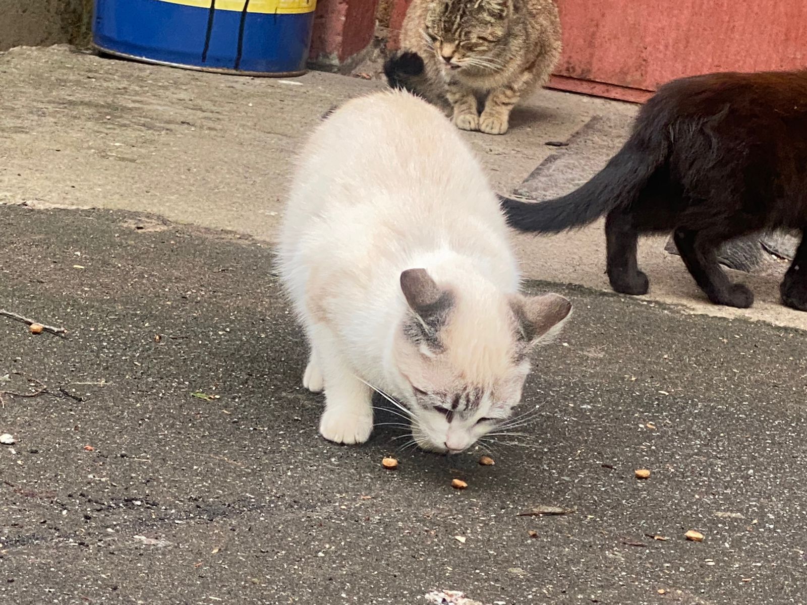 Кошечки кто как устроился, кто погиб сразу же под колесами автомобиля, кто то пропал, а эта кошка родила у подъезда котят.