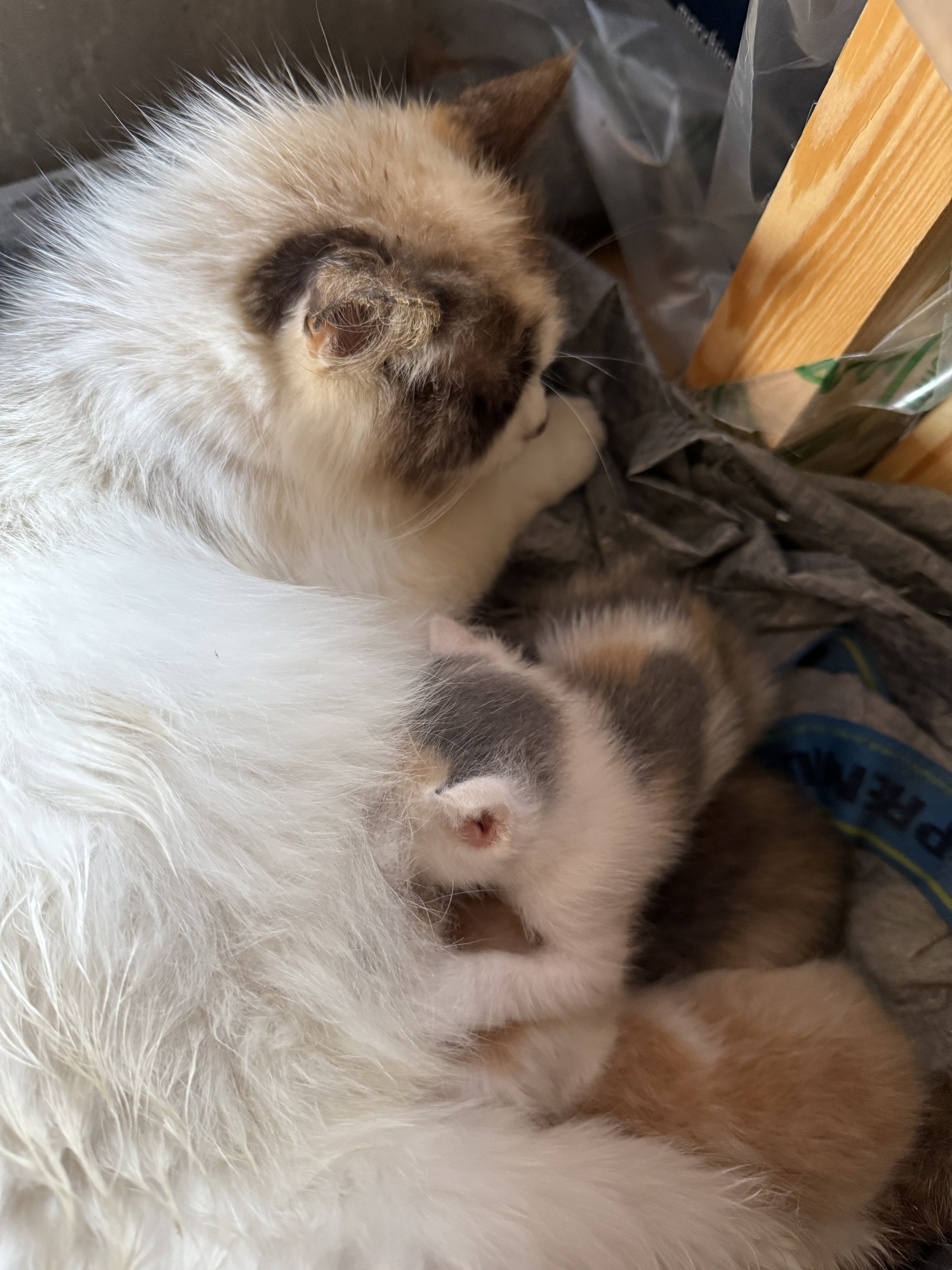 К нам пришла беременная кошечка. Окотилась у нас на участке.