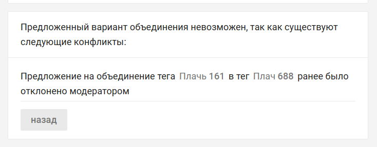 Он мог быть отклонен когда-то давно по неизвестной причине, после этого при попытке объединения будет показываться такая ошибка. Поправила, объединила :)