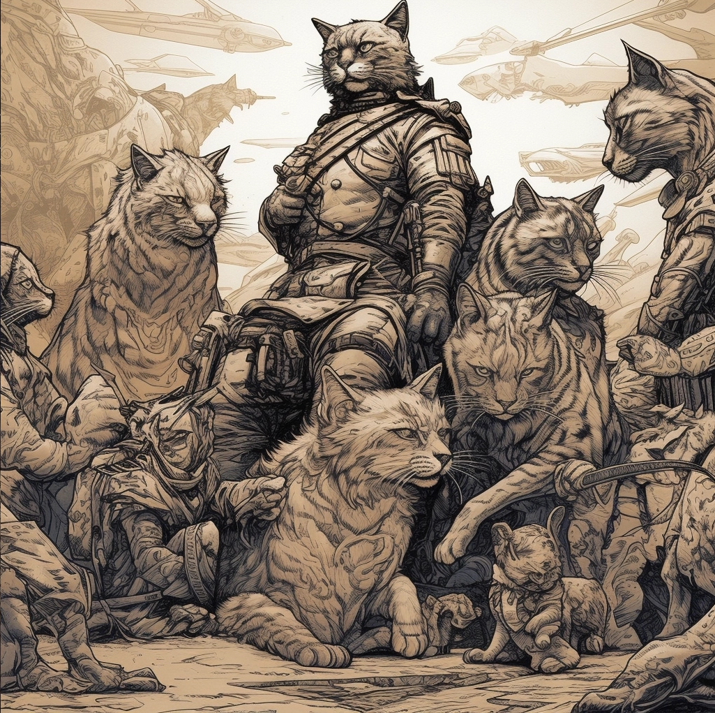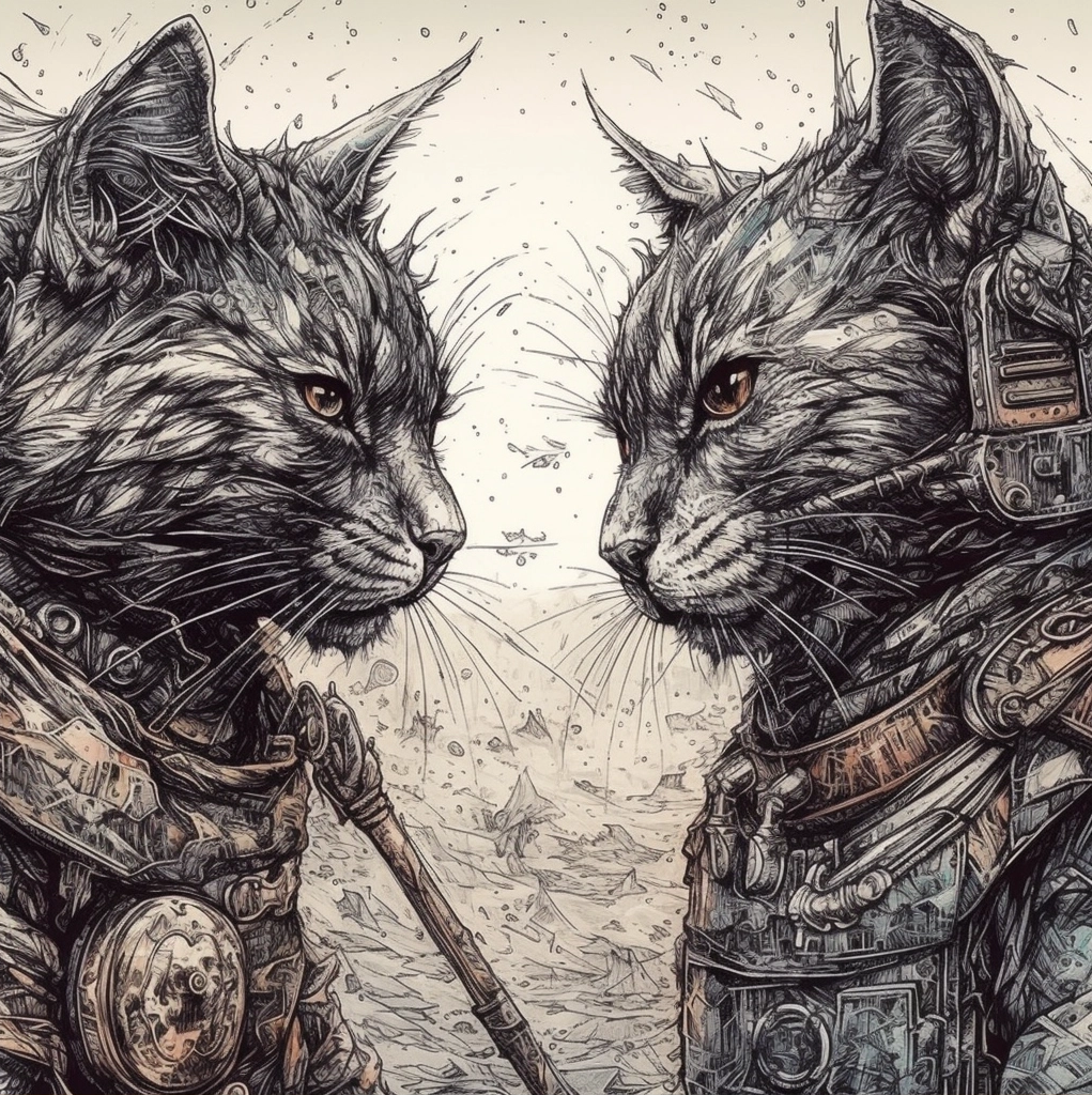 Midjourney - талантливый художник, которую попросили нарисовать боевых котов в различных стилях. Ее иллюстрации представляют собой уникальное слияние классических арт-направлений с ярким и оригинальным видением котов в качестве боевых персонажей.