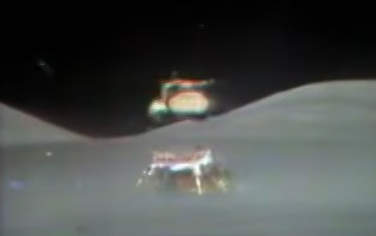 Итак, начинаем разбор видео и для начала смотрим кадр с лунным модулем за несколько секунд до старта с Луны на рисунке 1. После этого читателю легче будет ориентировать на видео, а именно узнавать, что летит, а что остается на Луне.