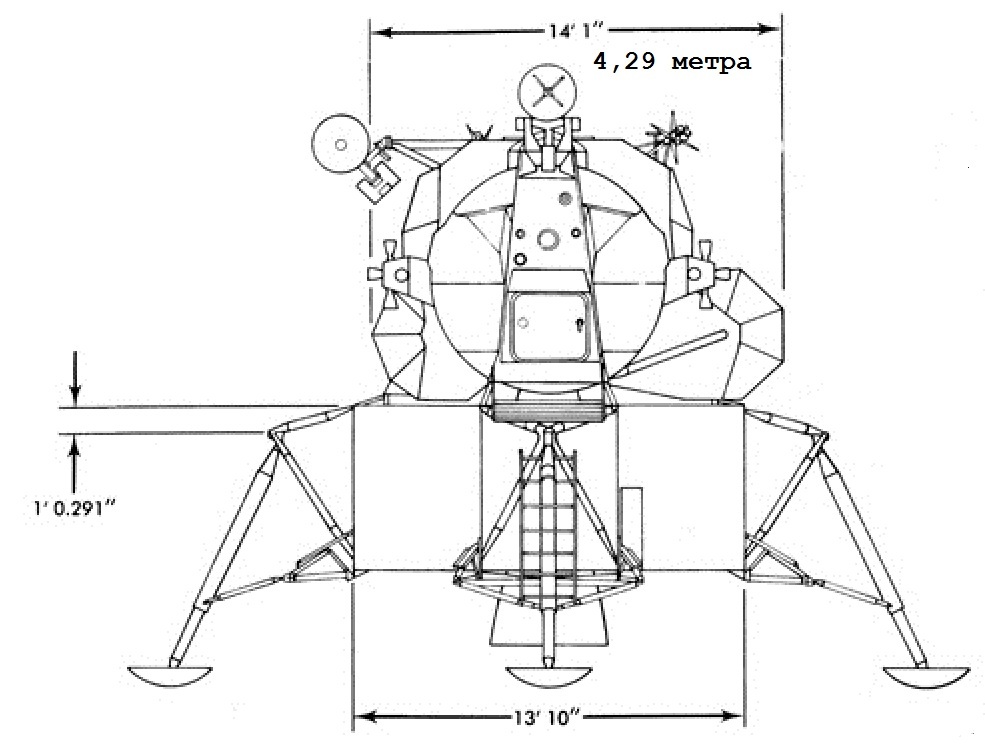 Также, предварительно посмотрев все это видео, мы установили, что лучше всего видна ширина взлетного модуля, именно ее мы и будем использовать в дальнейшем, изучения особенности этого старта. Реальную ширину мы конечно узнали из чертежа НАСА, который представлен на рисунке 2.