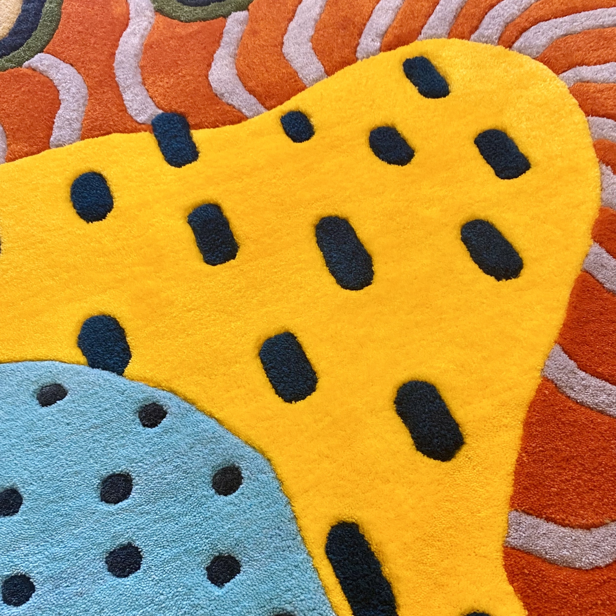 Всем привет! Сегодня буду показывать вам абстракцию. Это одна из сложных моих работ и точно самая масштабная - я даже полностью на неё помещаюсь. Я очень люблю этот ковёр, поэтому буду его хвалить, уж извините.
