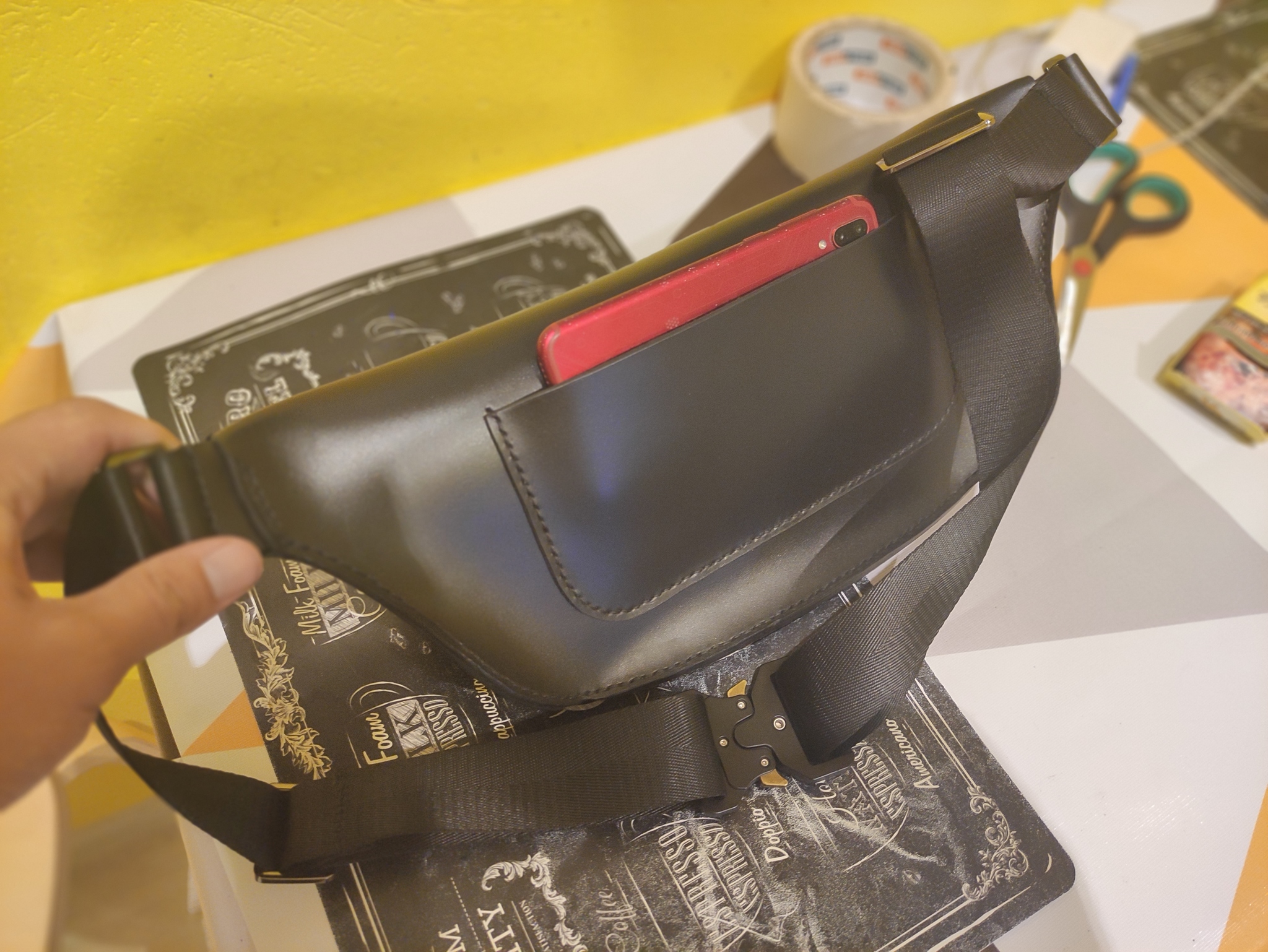 Кожа, начал шить и сразу бананки в стиле Batman' а