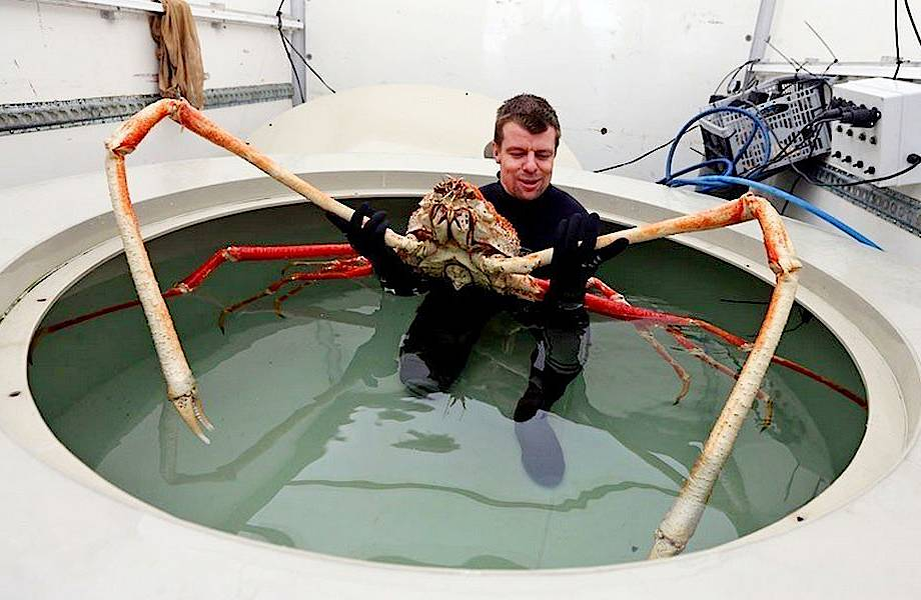 «Почему?» — спросите меня вы. Причин тут несколько, но самая главная — он эпически здоровенный! Взрослый краб-паук имеет размах лап от 1,5 до 3,8 метров — это крупнейшее членистоногое планеты. То есть один краб может обнять своими клешнями сразу толпу людей!