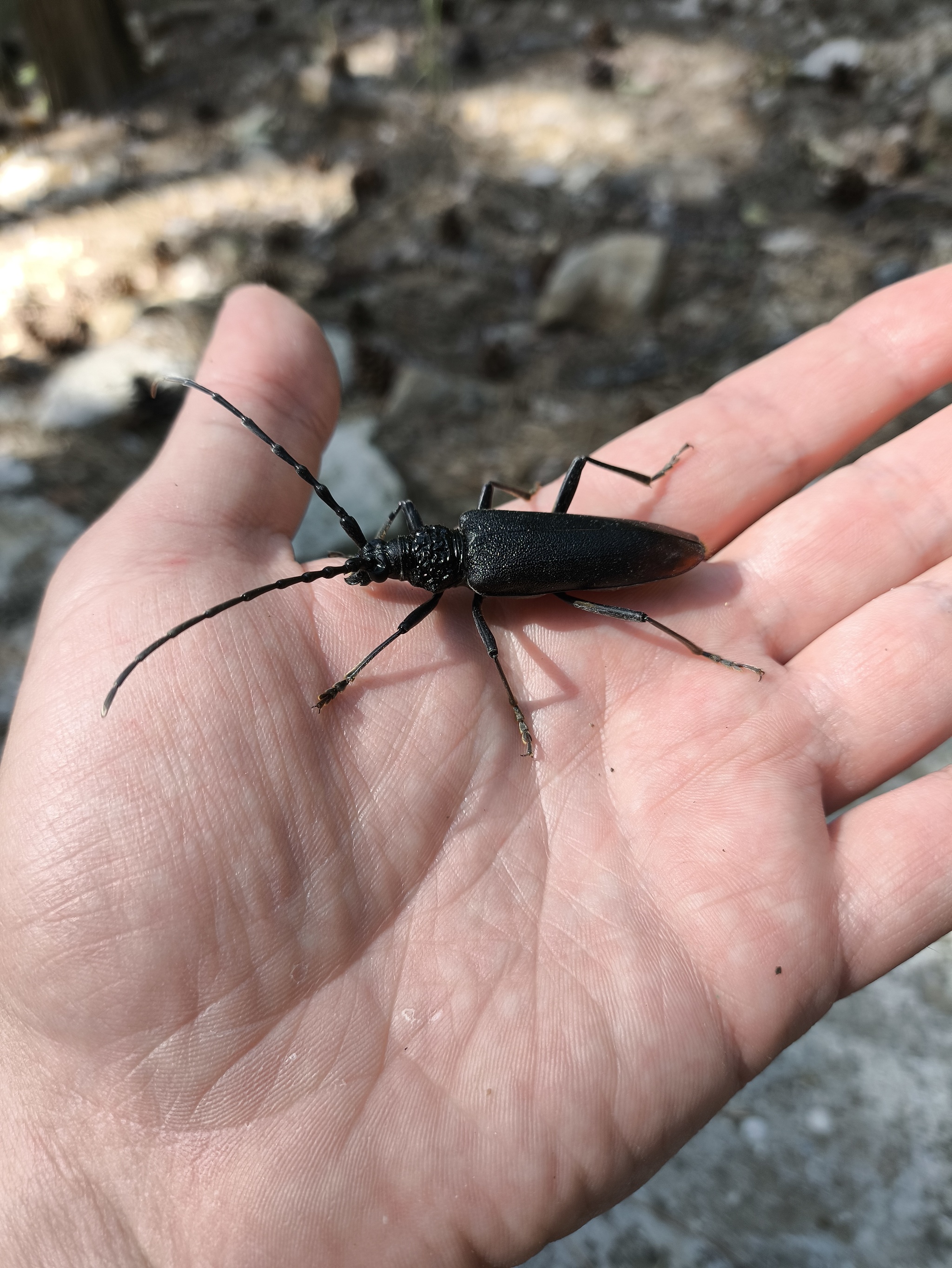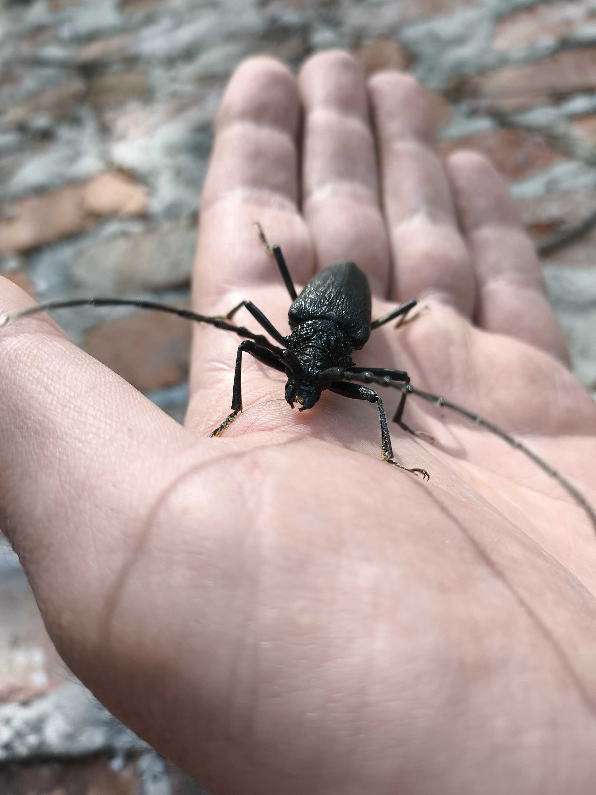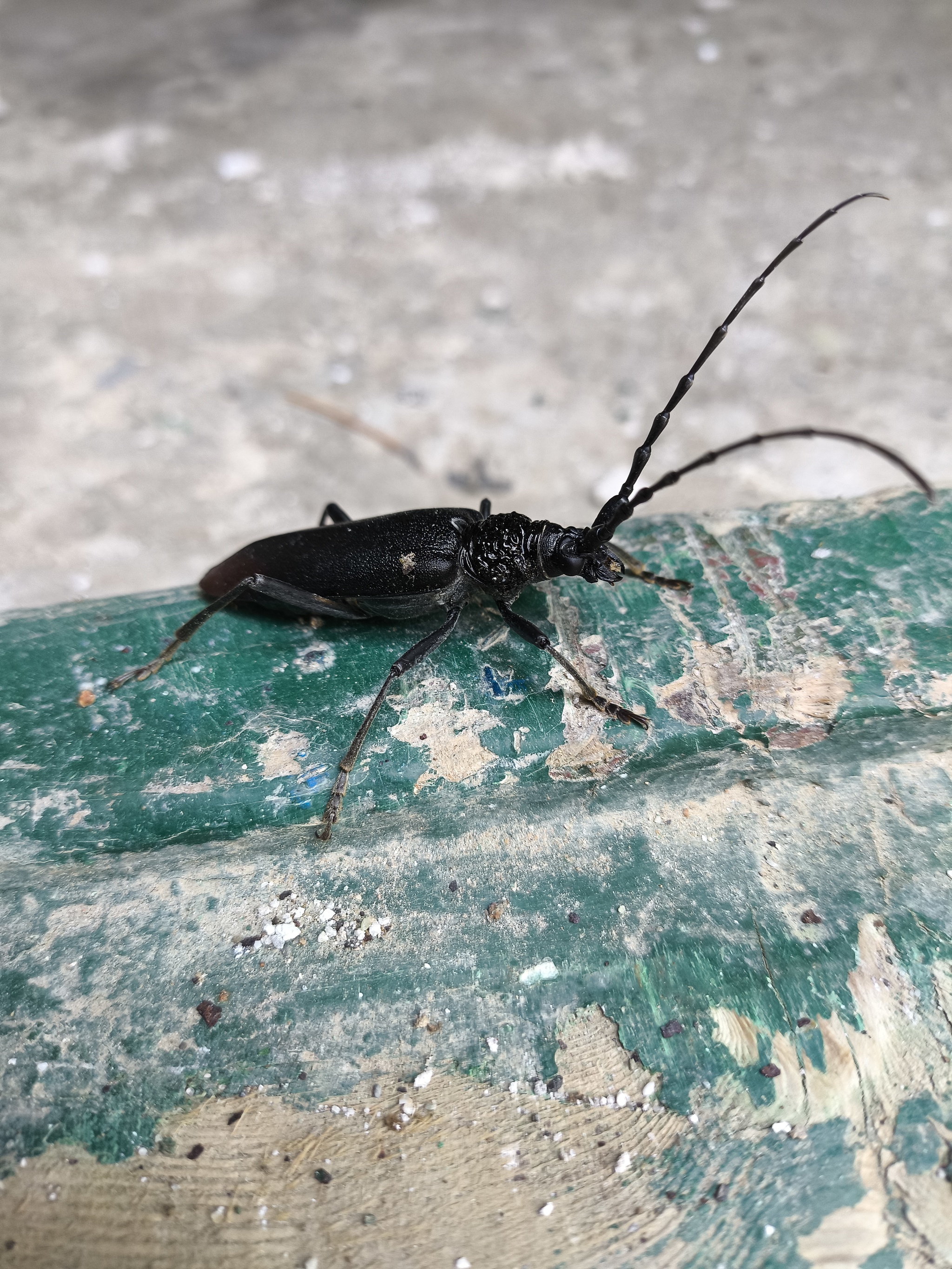 Сразу опознал в нем жука-дровосека, но таких здоровых я никогда не видел, хотя с детства тащил в руки любых встречных гадов, даже ядовитых)кстати, дровосеки довольно больно кусаются, даже обычные маленькие.