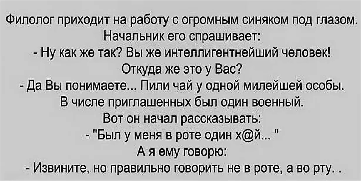 "Правильно говорить не в роте, а во рту" : О , вы не профессор - а доктор . А синяк под глазом - у вас уже есть ? :-)