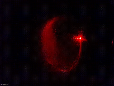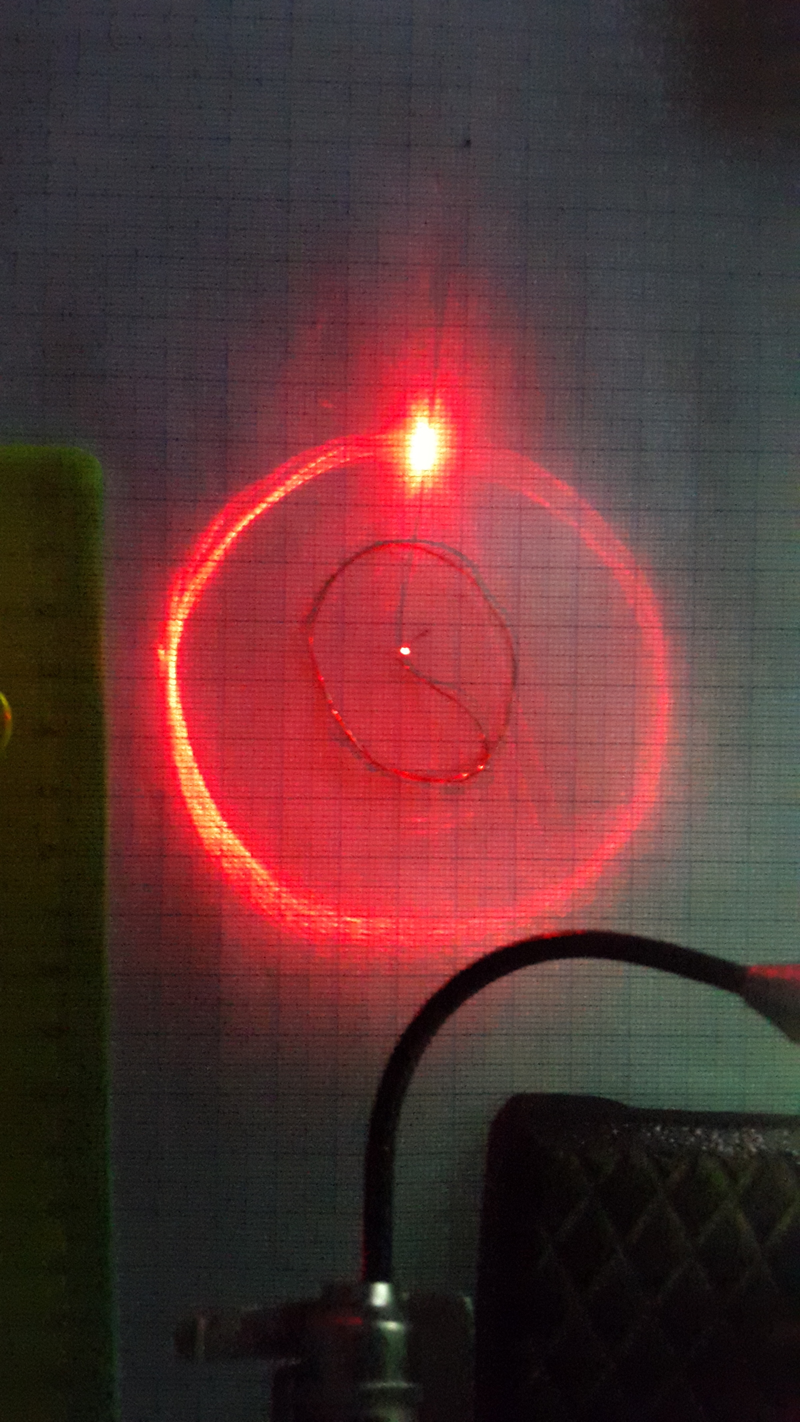 В анимации ниже сначала закоптили проволоку, что бы проверить получается ли такая картинка из-за отражения от проволоки. Оказалось что нет.