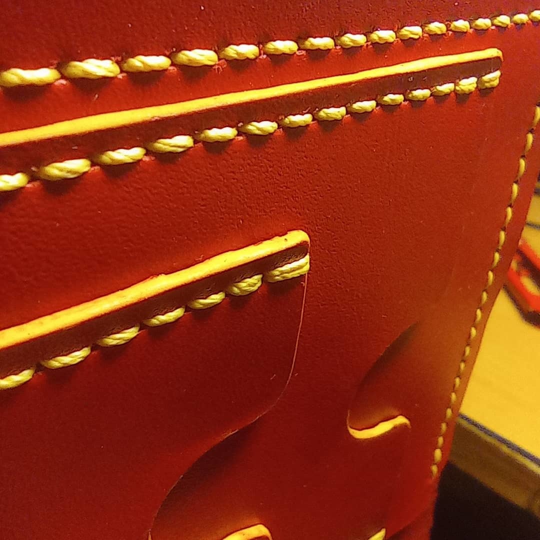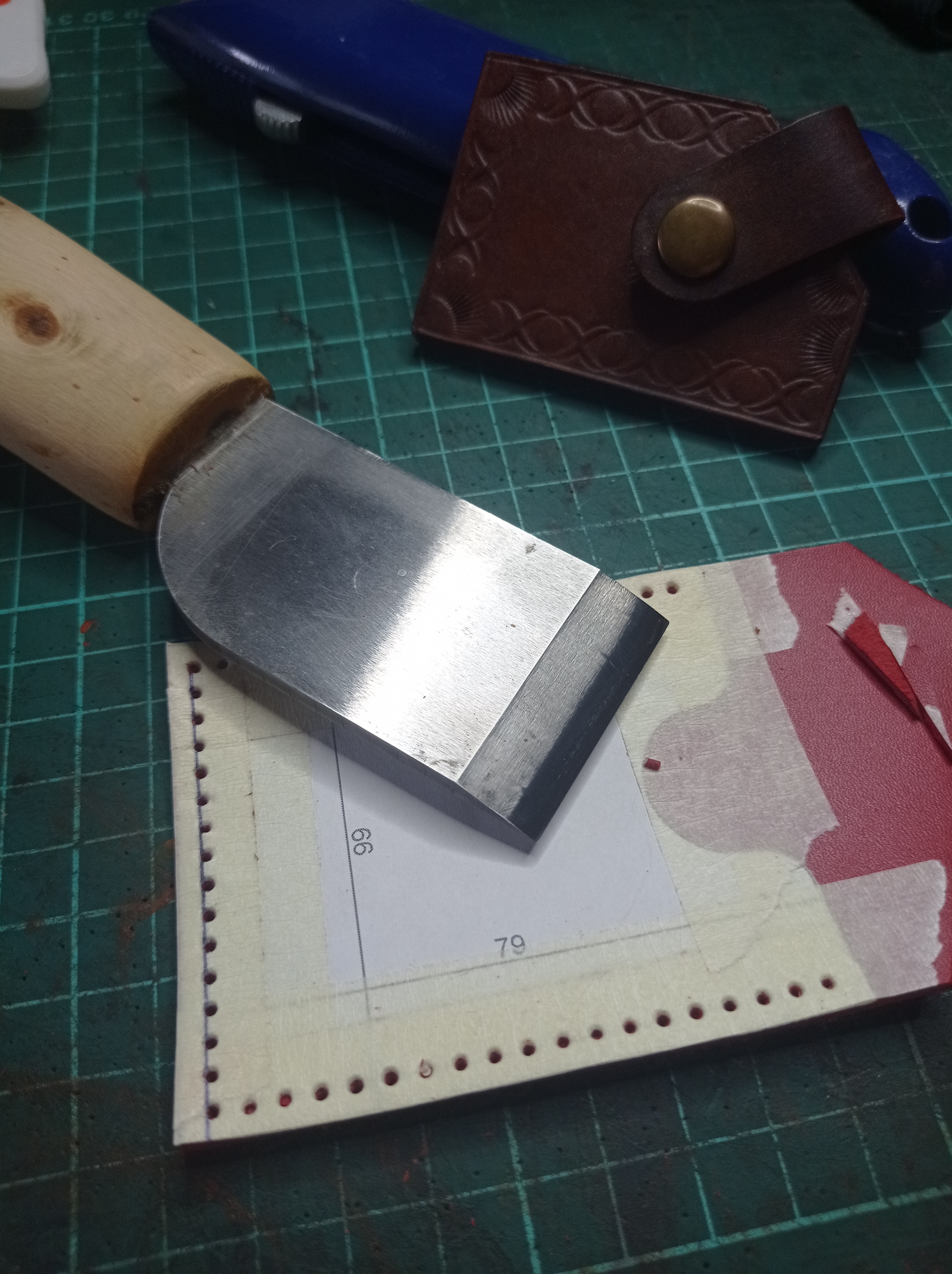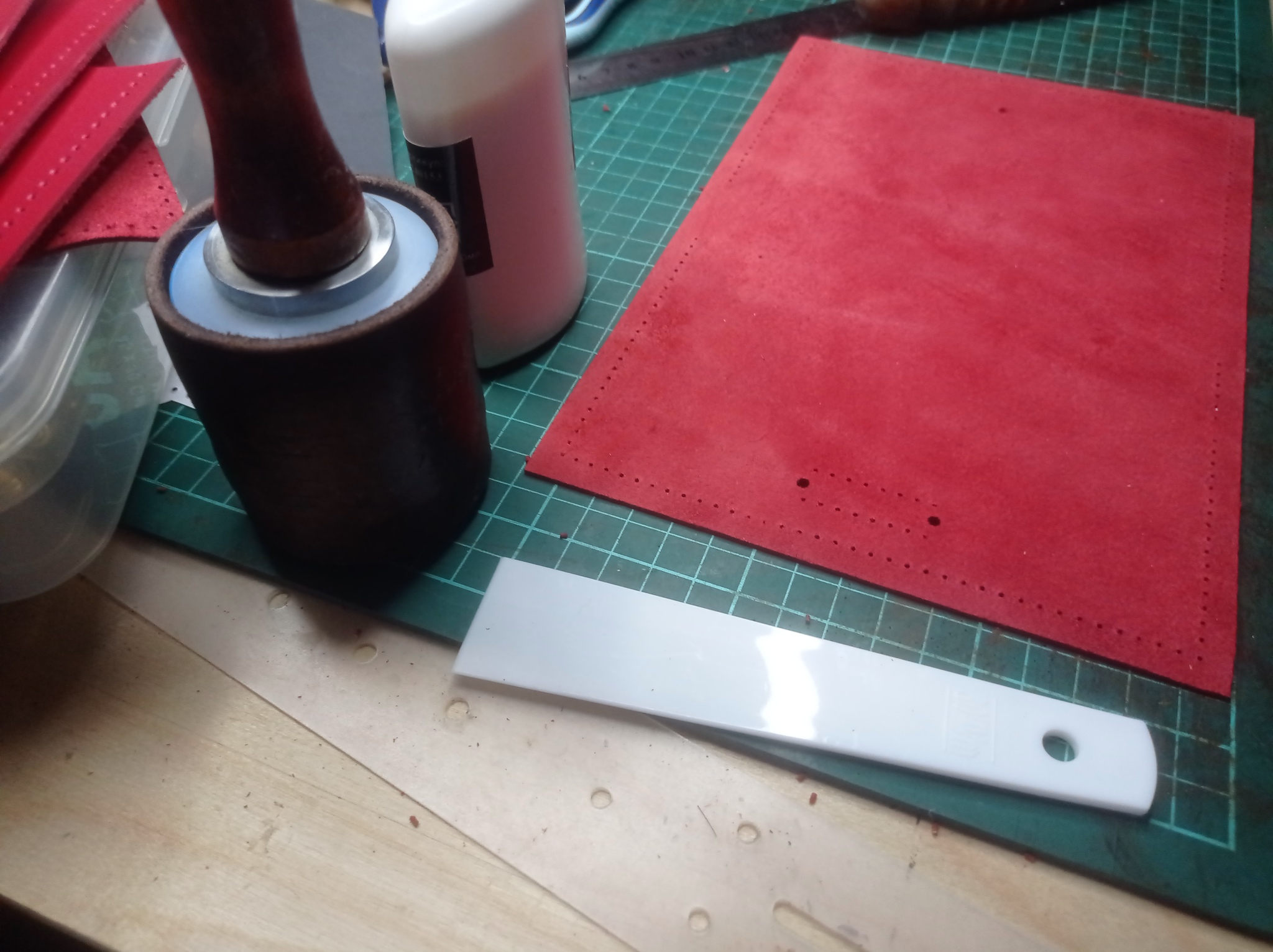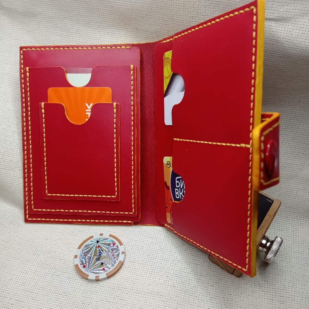Оставшуюся от пошива красной «бананки» кожу было решено пустить на более мелкие изделия. Одним из них стала обложка для автодокументов.