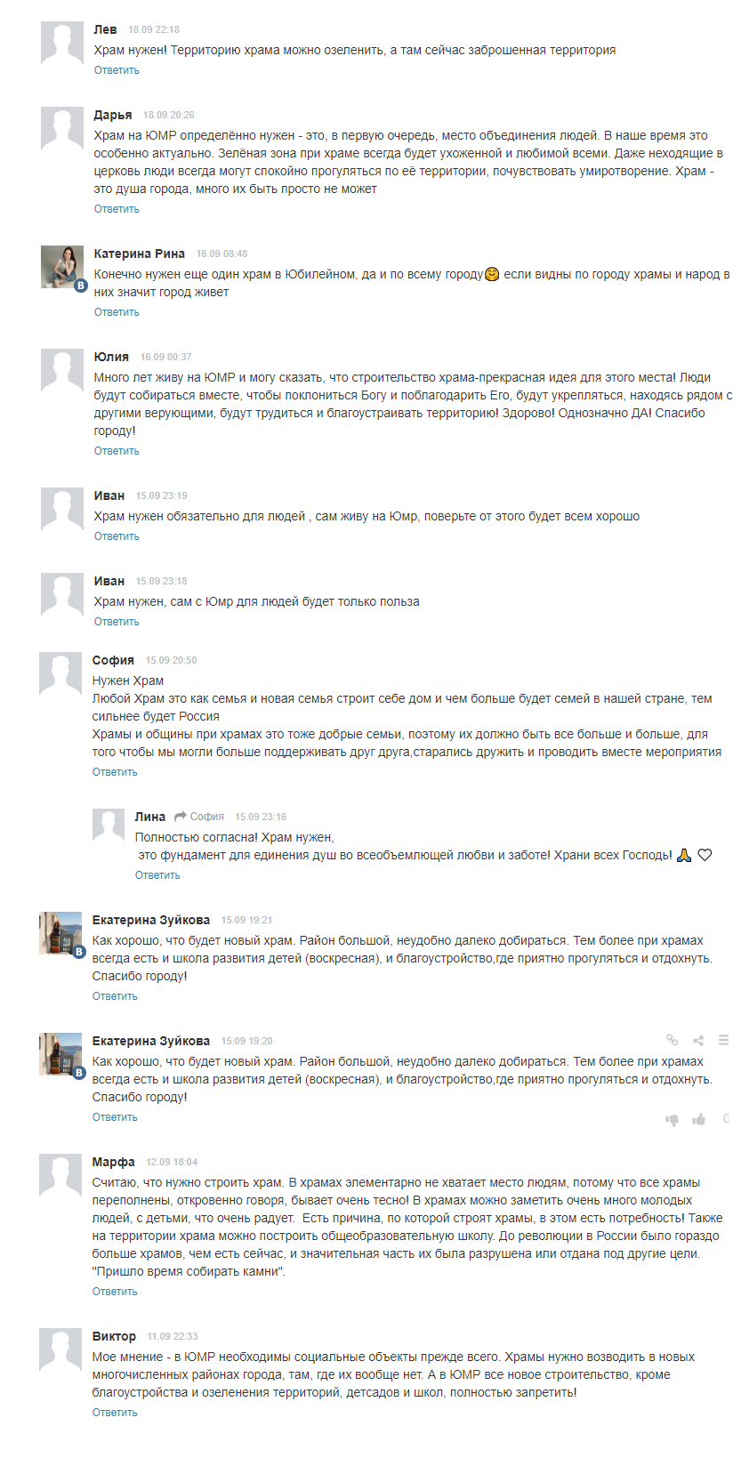 На новостных сайтах, под новостями боты администрации пишут комментарии в поддержку постройки храма, после того как кто то высказался против: