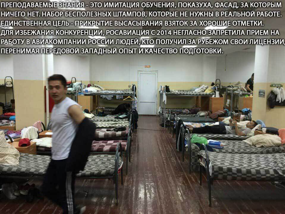 Коррупция от начала поступления и до конца обучения. Заранее составляются списки, кто поступит, а кто нет. Используются серые схемы с торговлей оценками к школьным аттестатам. В вечерних школах-экстернатах заказывают нарисовать в дипломах нужные оценки. Просто устраивается спектакль, как будто человек заново переучился и пересдал все на "5". Выдернете любого поступившего за рукав и попросите решить простое логарифмическое уравнение или написать под диктовку несколько предложений - все фальшивые оценки разобьются в пух и прах. Факт рисования фиктивных оценок в настоящий бланк аттестата, конечно, недоказуем. Человек по бумагам учился и посещал занятия в вечерней школе. Все последующие зачеты и экзамены проставляются за деньги. На бесплатные бюджетные места также переводят с платного факультета за взятку, включая перевод из других учебных заведений. Все это тщательно покрывается руководством Росавиации, которые также в доле. В 2022 арестовали Максима Павлюка (зам. Нерадько), который брал взятки с действующих пилотов под угрозой фабрикации мнимых нарушений и последующей аннуляции лицензии. При попытках уехать в другую страну на ПМЖ не подтверждали лицензию без взятки, чтобы человек не смог устроиться за рубежом. Все частные авиашколы РФ были ликвидированы при помощи административного ресурса, т.к. там учили лучше, дешевле и быстрее. После уничтожения конкурентов добавили еще негласный запрет на трудоустройство в Российские компании с иностранными лицензиям без российского диплома, чтобы сформировалась тотальная монополия для беспрепятственного разворовывания колоссальных бюджетных средств, выделяемых на финансирование государственных училищ. Самолеты летают с отработанным ресурсом запчастей, под видом новых ставятся б/у после кустарного ремонта без соблюдение тех.регламента, не говоря уже про более банальные вещи, как обновление навигационных баз в компьютерной системе самолета (полеты в США со старыми базами нелегальны и влекут серьезные последствия). Используют махинации при закупках горюче-смазочных материалов. Кроят деньги на всем, складывая разницу в карман. Небольшие инциденты и отказы оборудования замалчивают, скрывают. Начальник училища Караман Александр ранее руководил преступной группировкой из Краснокутского УФСКН, занимающейся подбрасыванием наркотиков случайным лицам с целью вымогательства и повышения плана раскрываемости преступлений. Приписывают фальшивый налет: сажают по 3 пассажира в кабину, а документируют как будто каждый сам летал в качестве командира за штурвалом. Самостоятельно не летают - рядом всегда сидит инструктор, хотя обязаны по закону летать одни без посторонних лиц на борту. На посадках отбирают штурвал у студентов, чтобы они не разбили дорогостоящий самолет. Преподают бесполезные и морально устаревшие знания, растянутые на несколько лет, которые не имеют ничего общего с реальностью и не нужны абсолютно нигде, кроме стен этого самого заведения. Знания настолько слабые, что многие не способны ответить на элементарные вопросы по теории полетов. Практических навыков у бывших студентов тоже нет, они не умеют управлять техникой. Представьте себе водителя, который не знает современных правил дорожного движения, путает газ с тормозом и не может выполнить параллельную парковку.