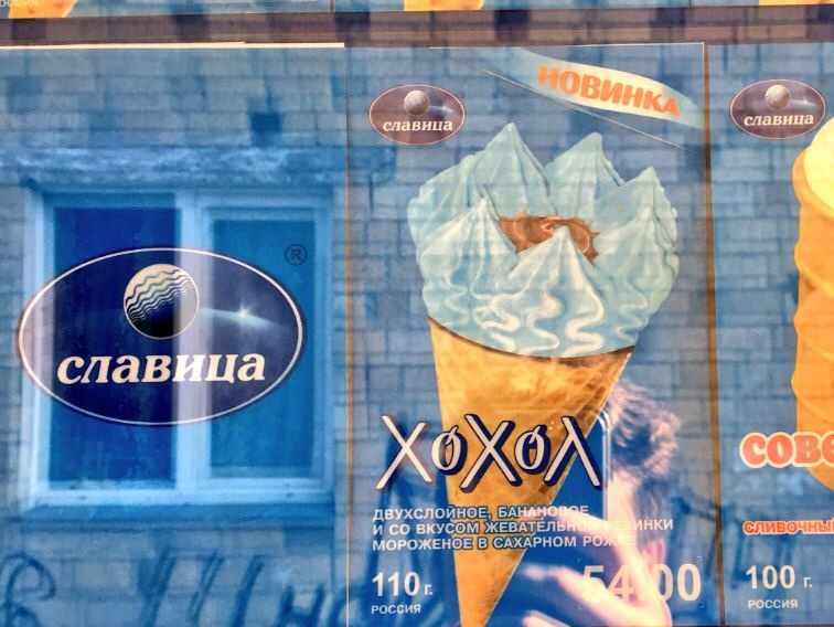 Основанная в Красноярске компания «Славица» начала производить мороженое под названием «Хохол». Двухслойное, банановое, со вкусом жевательной резинки мороженое в сахарном рожке продается за 54 рубля.