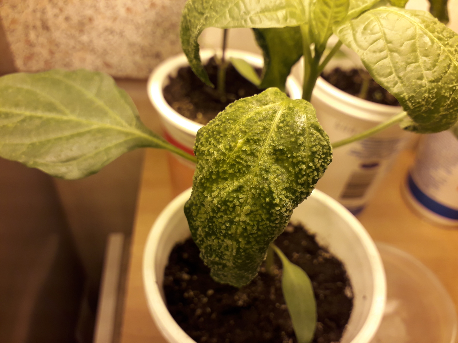 Но есть одна непонятная штука, некоторые листики покрылись чем то странным, как будто сахар на поверхности листьев кристаллизуется. Не все листья такие, 50 на 50. На ощупь сухая и шершавая.
