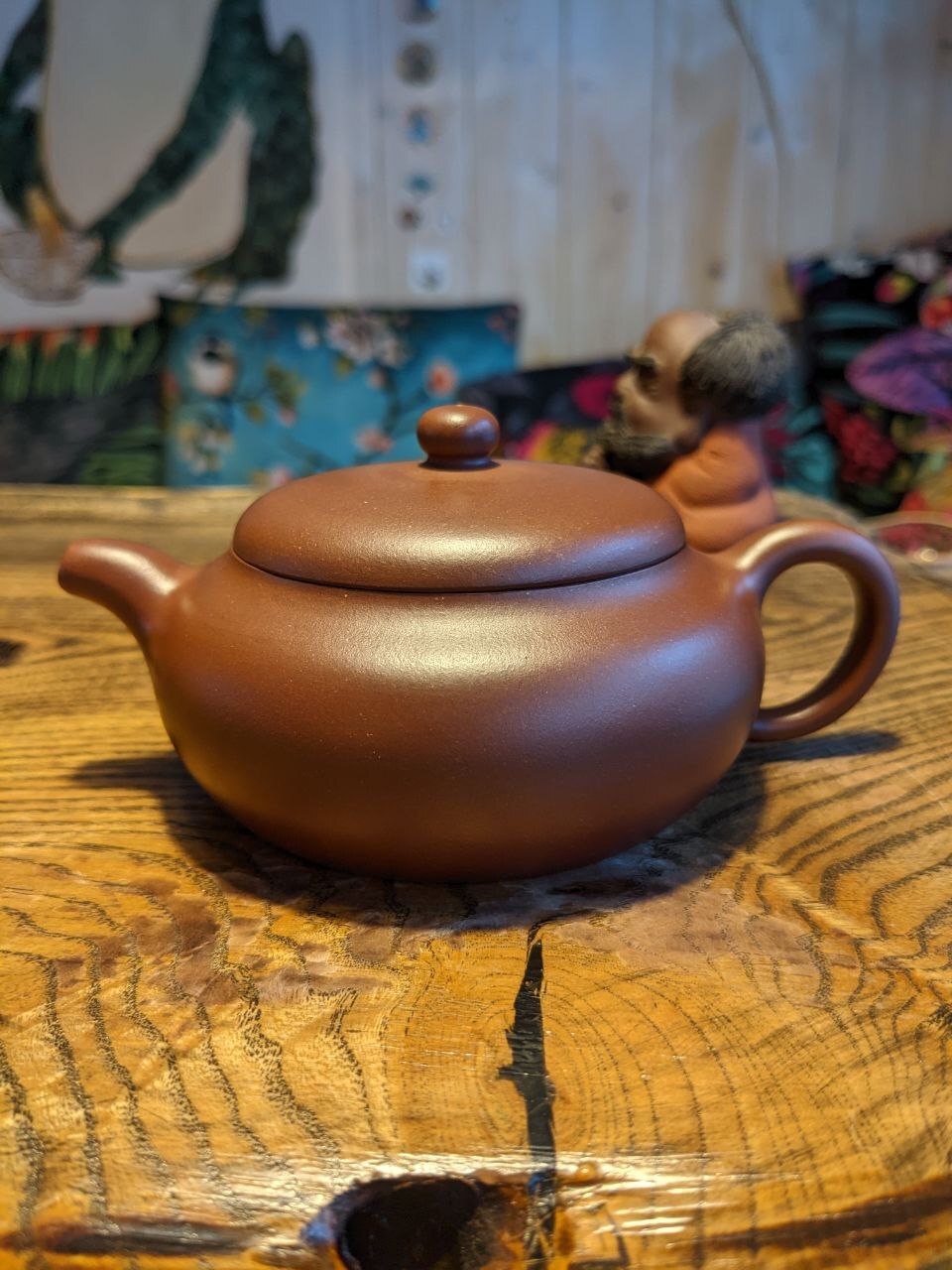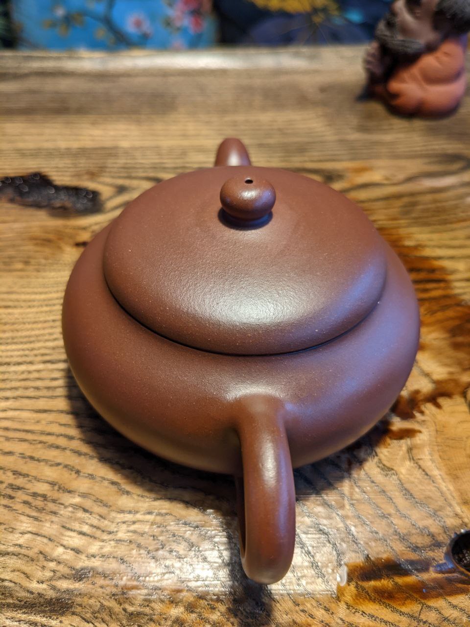 В дело пошёл второй чайник под красные, ручной работы (её отчетливо видно на 2 фото дна и на 3 фото с крышкой). Не люблю плоские чайники, но этот хорошо работает.