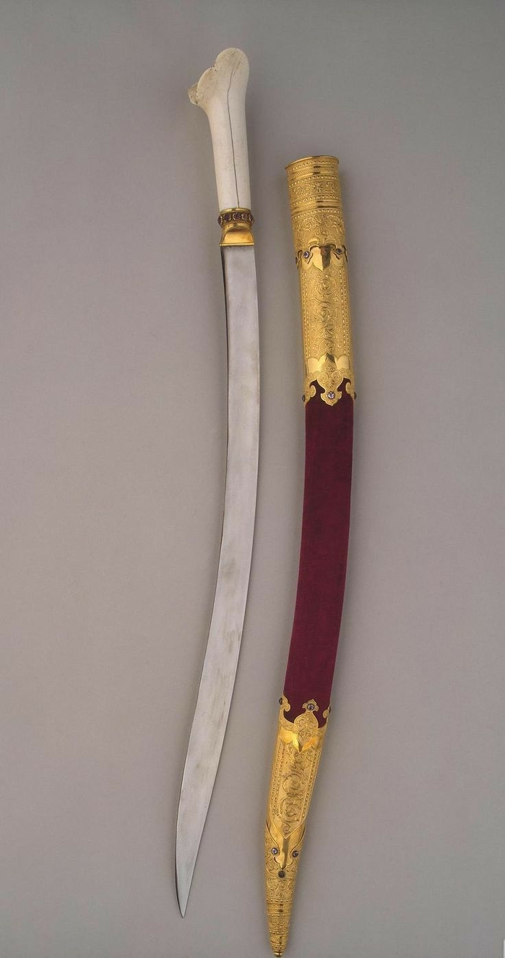 4. Ятаган с ножнами, 1839 г., сталь и кость, ковка и чеканка. Длина 82 см. Эрмитаж, Россия.