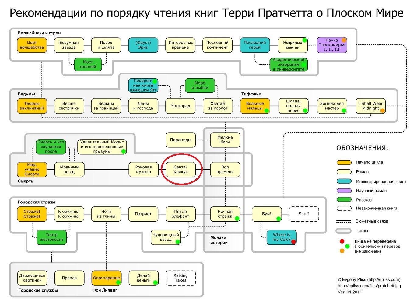 Я не то чтобы фанат этого писателя, мне понравилась поваренная книга, и какое то ответвление про котов и компьютеры, начинала цвет волшебства, недалеко продвинулась, еще благие знамения нравились, сейчас пытаюсь смотреть Санта хрякуса но в виде книги наверно поинтереснее