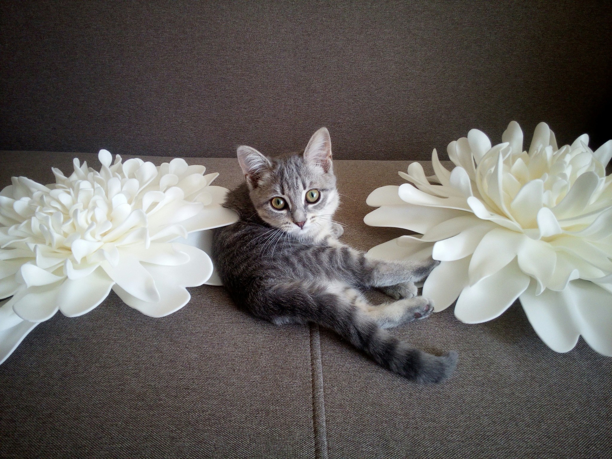 Кошка натуральная, цветы рукотворные) если будет интересно, могу о них рассказать.