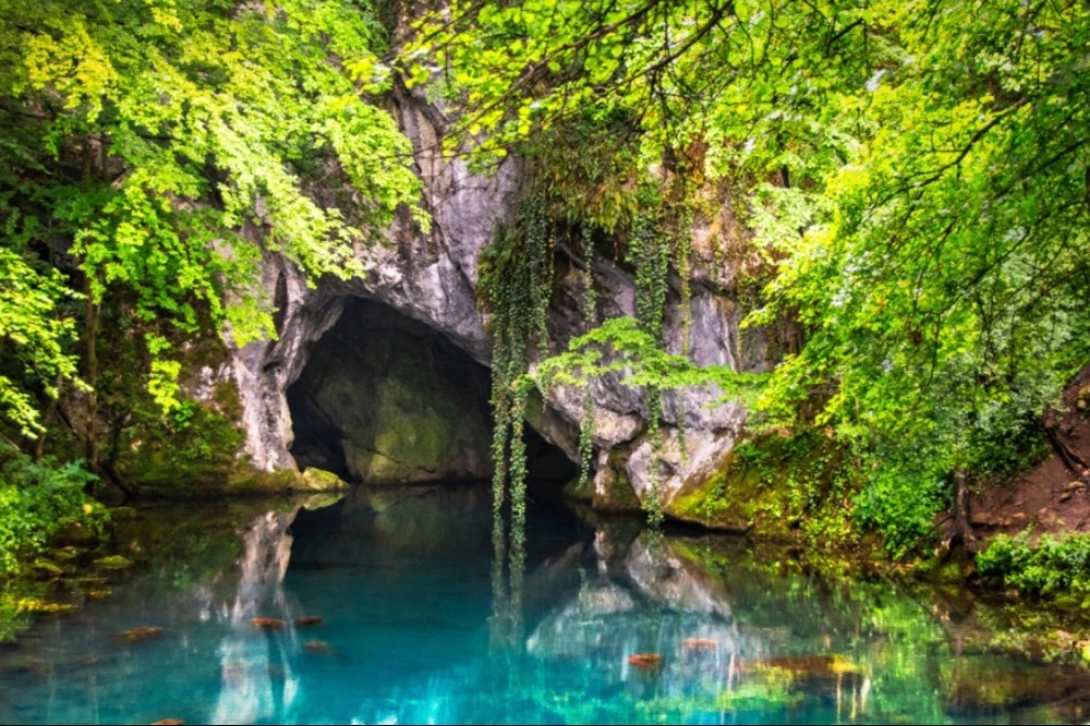 Между горными вершинами Кучай, Беляница и Хомолье спрятана бирюзовая вода, пышная зелень и таинственная пещера, от которых захватывает дух.