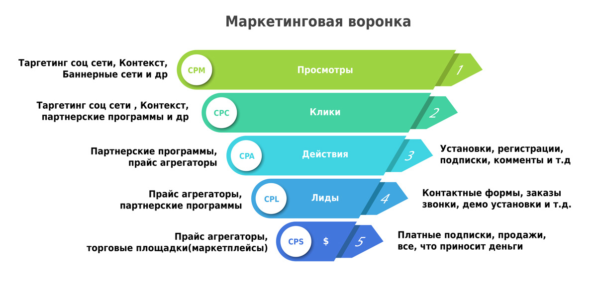 Первые два этапа не имеют никакой ценности для бизнеса с точки зрения perfomance маркетинга. Они могут быть важны только если стоит задача популяризации бренда. Третий и четвертый лишь косвенно влияют на продажи, но при этом уже интересны бизнесу. С лидами нужно быть очень аккуратными, низкое качество лидов может не только снизить прибыль, но и обанкротить компанию. Каналов на самом деле больше, но мы рассмотрим основные из них и пока только белые.