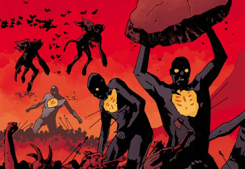Всё имеет своё начало. И здесь оно лежит не в 1994 году, когда вышел первый комикс, и даже не в 1944-м, когда родился Хеллбой. Всё началось в седой древности, в эпоху, которую люди позабудут и назовут мифами. Именно в те доисторические времена разыгралась первая катастрофа. После сотворения мира Бог поручил могущественным существам - Стражам - наблюдать за безлюдной Землёй, а сам удалился по своим делам. Один из Стражей, Анум, создал ужасных космических драконов Огдру Джахад и их потомков Огдру Хем для своих неясных целей. Пробудив драконов, Анум осознал содеянное и попытался остановить зло, заточив Огдру Джахад в кристаллы, но был жестоко наказан сородичами. От него осталась лишь Правая Рука Судьбы - артефакт, который позже стал частью тела Хеллбоя.
