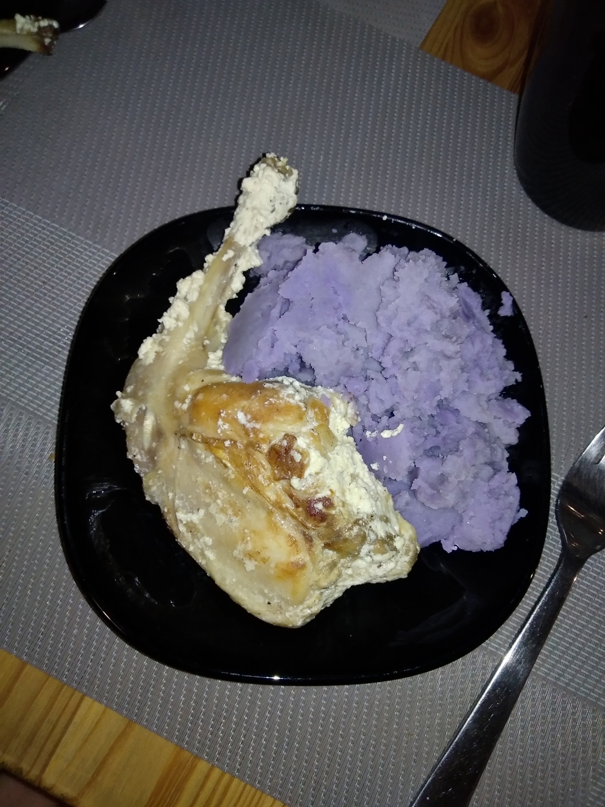 Немного кулинарии. Кролик в сметане с пюре из фиолетовой картошки: