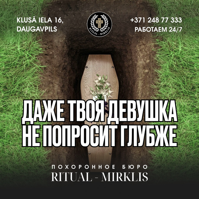 DELETFD Баяны Юмор Креативная реклама ритуального агентства в Латвии 1 год назад Черный юмор Креативная реклама Странный юмор Юмор Похороны Ритуальные услуги Длиннопост Ещё 0