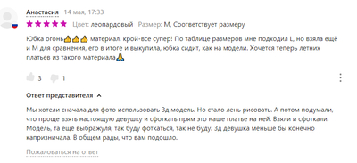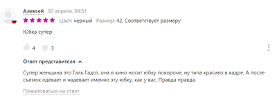 1870 starscream343 Креативные отзывы на юбку 3 года назад Выпишите премию представителю бренда! https://wildberries.ru/catalog/76554203/detail.aspx [моё] Отзыв Wildberries Юмор Скриншот Длиннопост 43 9 8 Ещё 0