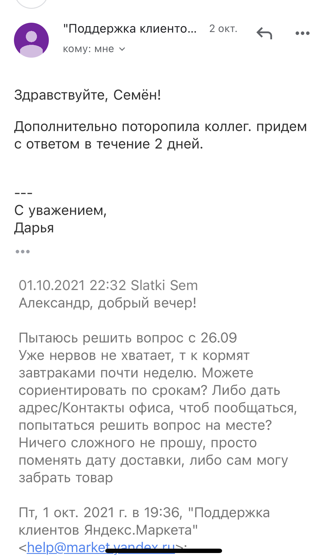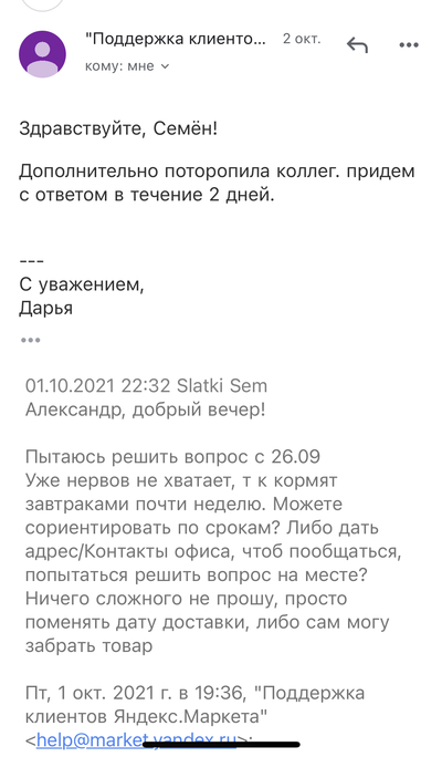 Вот так вот вернутся? Обратите внимание, это было 2 октября. Идёт третий день, даже не соизволили ответить, молчу уже о решении проблемы