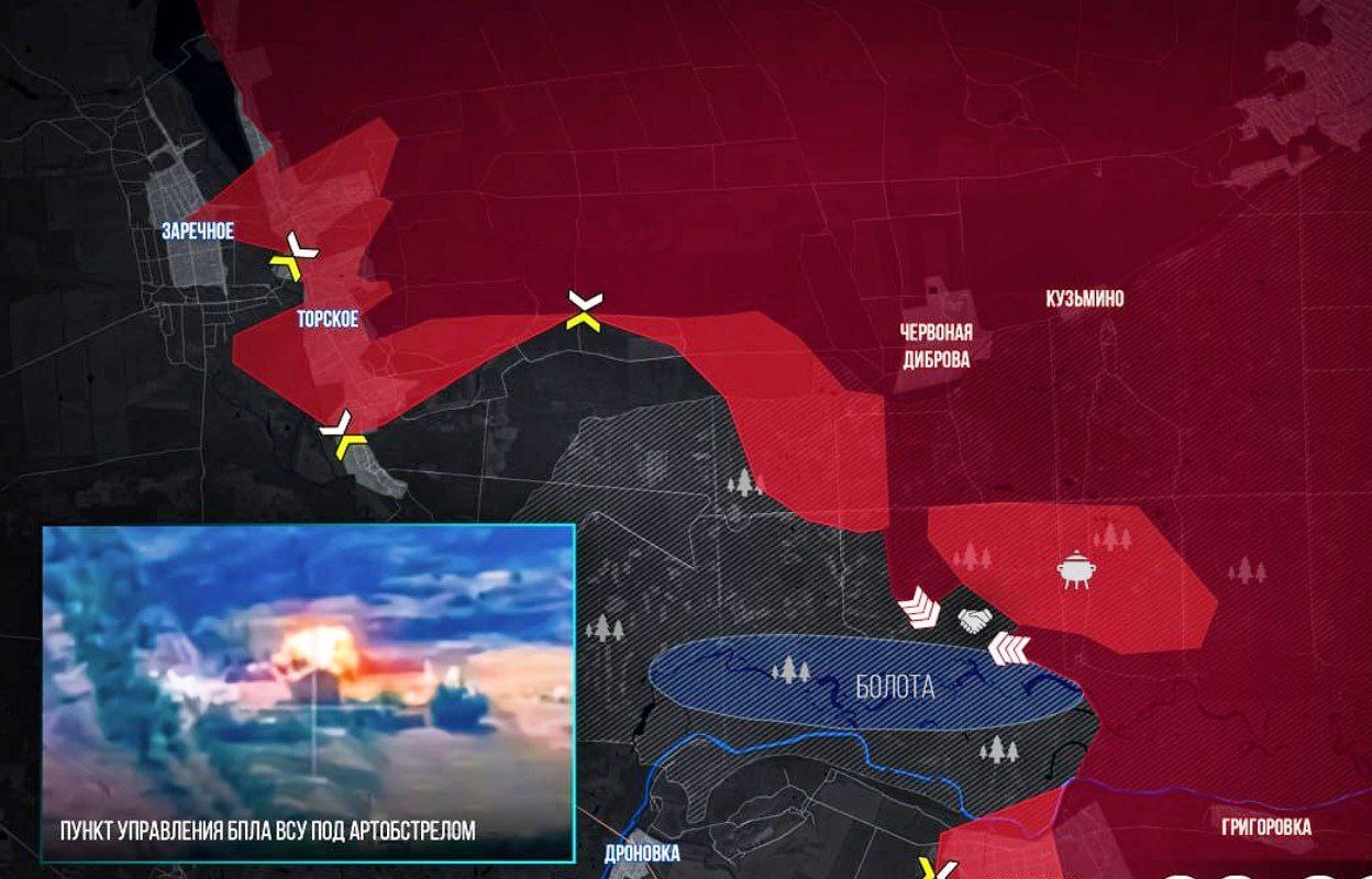 Русские штурмовики заперли украинские подразделения в Кременских лесах — враг зажат между болотами и потерял пути отхода. На Краснолиманском направлении наши войска штурмуют укрепрайон из пяти сел, прорвались в Заречное и лишили ВСУ логистического барьера в виде реки Жеребец.
