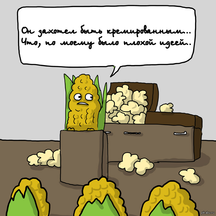 162 mrfish Кремирование - это не выход! 12 лет назад Взято и переведено с http://theawkwardyeti.com/ Кремация Кукуруза Попкорн