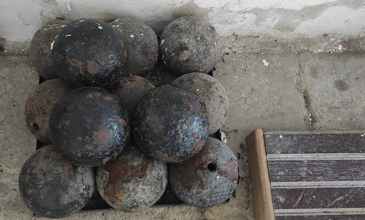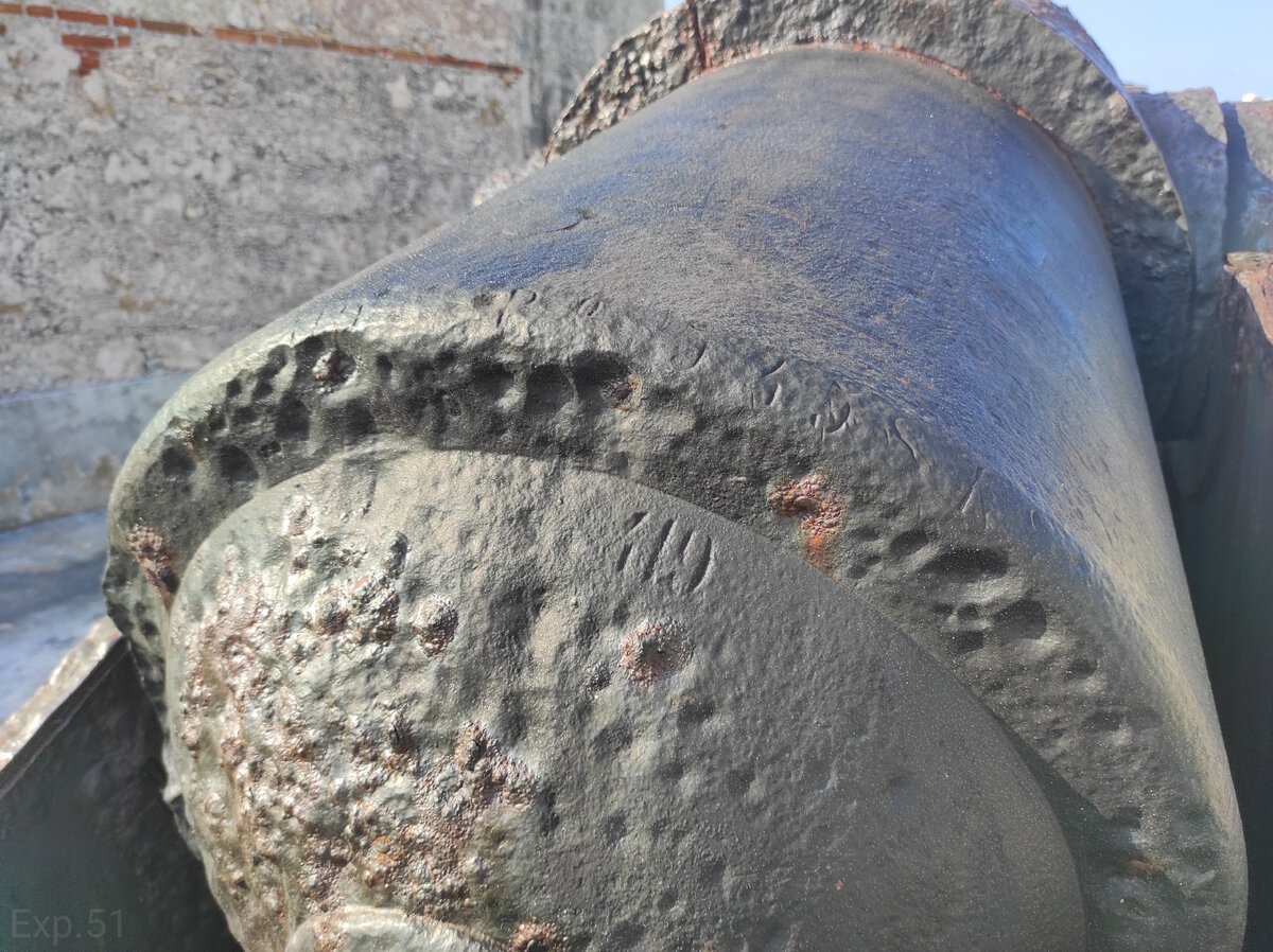 Близость солёной морской воды и сильные ветра буквально разъедают металл. Судя по сохранившимся датам, эти орудия изготавливались (отливались) в начале 19 века.