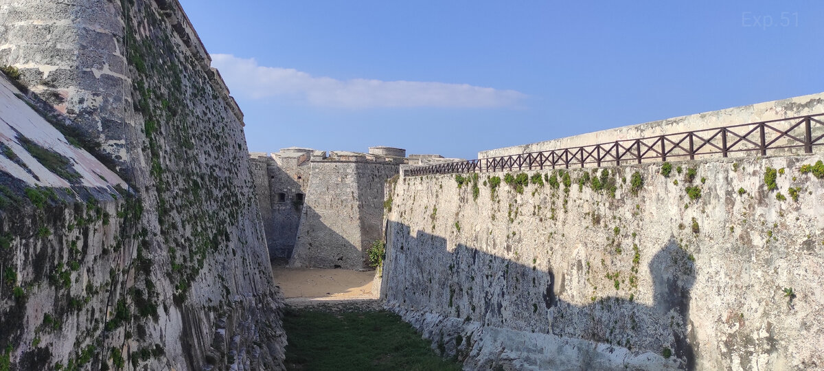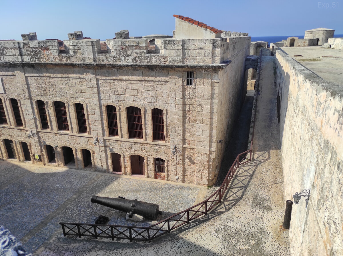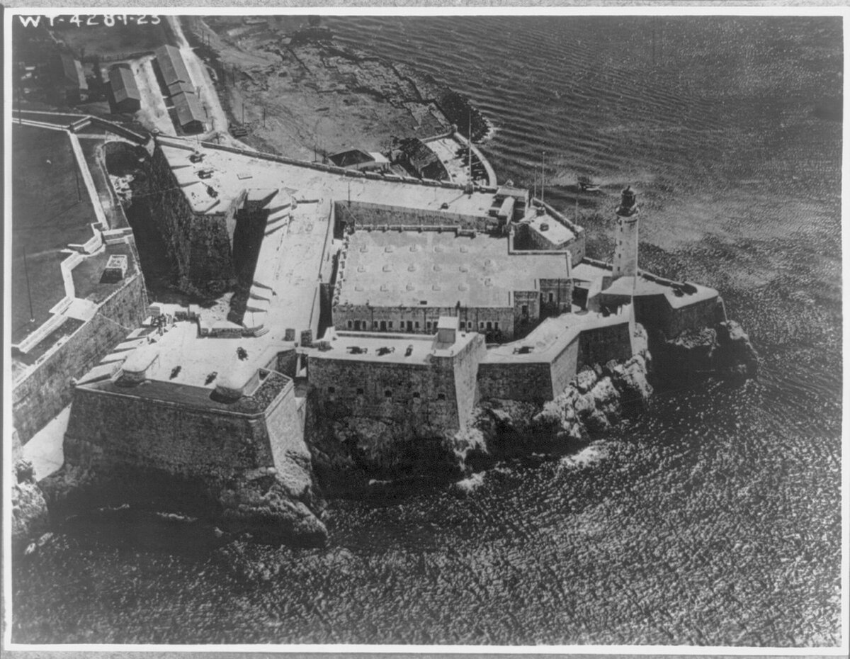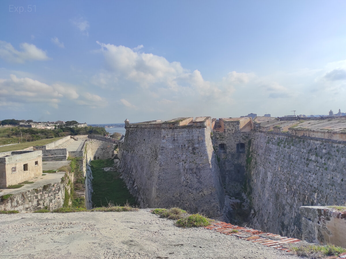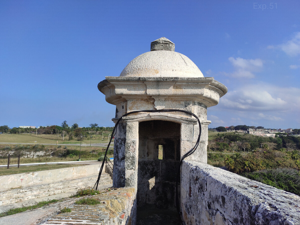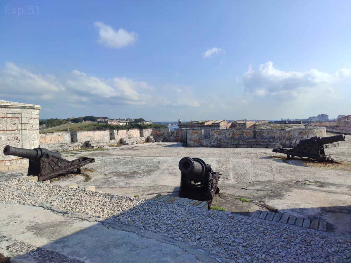 Крепость предназначалась для защиты Гаваны от атак с моря и была плохо защищена с суши, что и сыграло свою роль во время штурма англичанами. Слева вдали видно невысокий холм, примерно оттуда англичане и начали наступление.