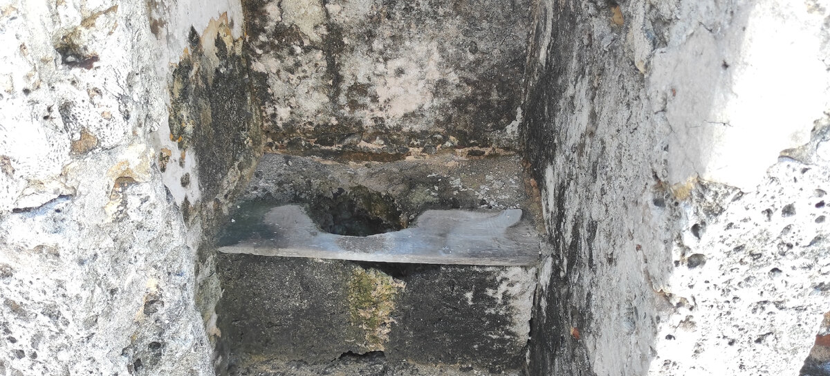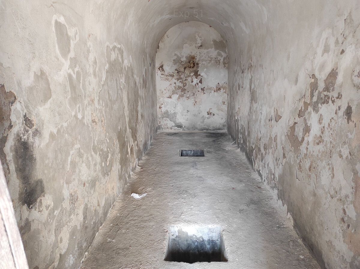 Пороховой погреб внутри. Отверстия в полу могли использоваться для механизма подачи ядер и пороха из крепости.